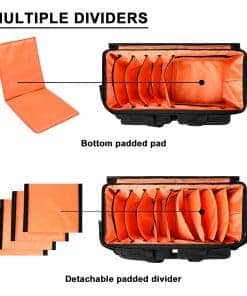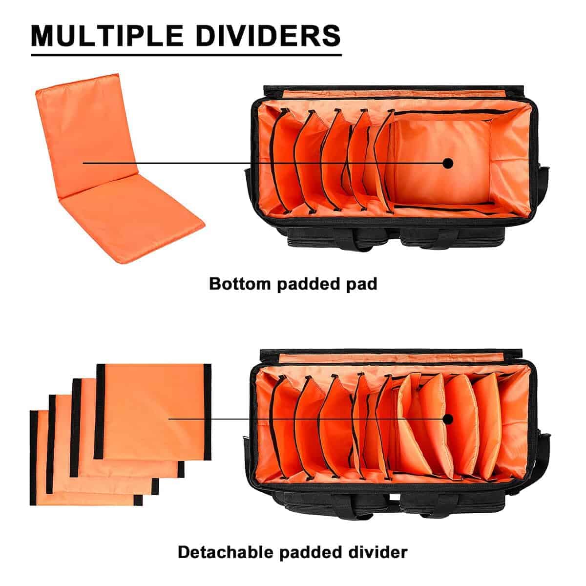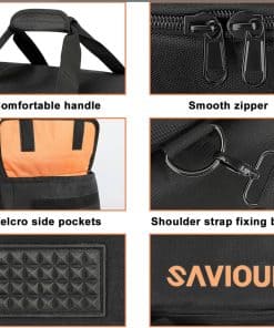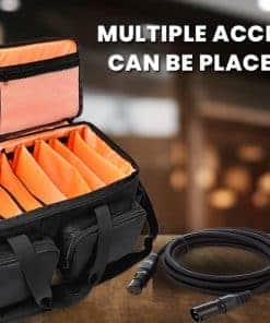 1. Bolsa de accesorios multifunción ideal para almacenar cables de audio y XLR, cables HDMI, cables de carga de energía, cables DVI, cables visuales y muchos otros equipos esenciales. 2. Sistema de almacenamiento de divisores personalizables esta bolsa de almacenamiento de cables cuenta con 10 secciones con divisores acolchados tanto cosidos como extraíbles que te ofrecen múltiples opciones para crear espacio para cables, cables, equipo de cámara y accesorios. 3. Bolsillos interiores y exteriores adicionales Cada bolsa de cables Saviour DJ también cuenta con bolsillos interiores de malla con cremallera y bolsillos exteriores totalmente cerrados para almacenar más equipo importante, para que puedas mantener todo ordenado, ordenado y accesible. 4. Uso compacto y portátil Perfecta para profesionales en movimiento, esta bolsa de viaje para cables cuenta con dos asas de transporte reforzadas que se cierran en la parte superior, así como una correa ajustable, acolchada y larga para un acceso rápido y práctico en movimiento. 5. Protección mejorada de cables Nuestro organizador de almacenamiento de cables cuenta con un exterior repelente al agua para mantener los contenidos limpios y secos, una correa para equipaje para portabilidad manos libres y una base antideslizante para ayudar a apoyar la durabilidad total de la bolsa.