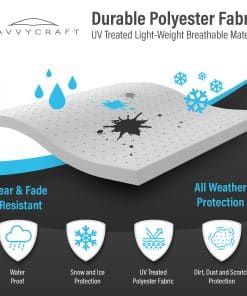 3. A Prueba de Viento: Las esquinas con dobladillo elástico, las correas ajustables en los paneles delantero y trasero proporcionan a la cubierta un ajuste apretado y firme; Las costuras de doble puntada evitan el desgarro y ayudan a prolongar la vida útil de la cubierta.