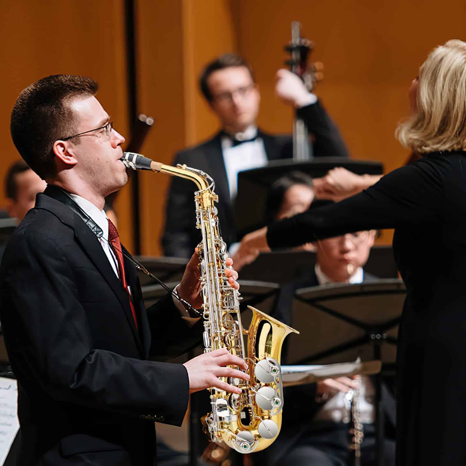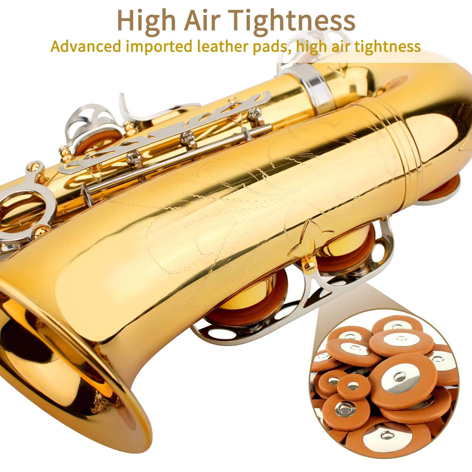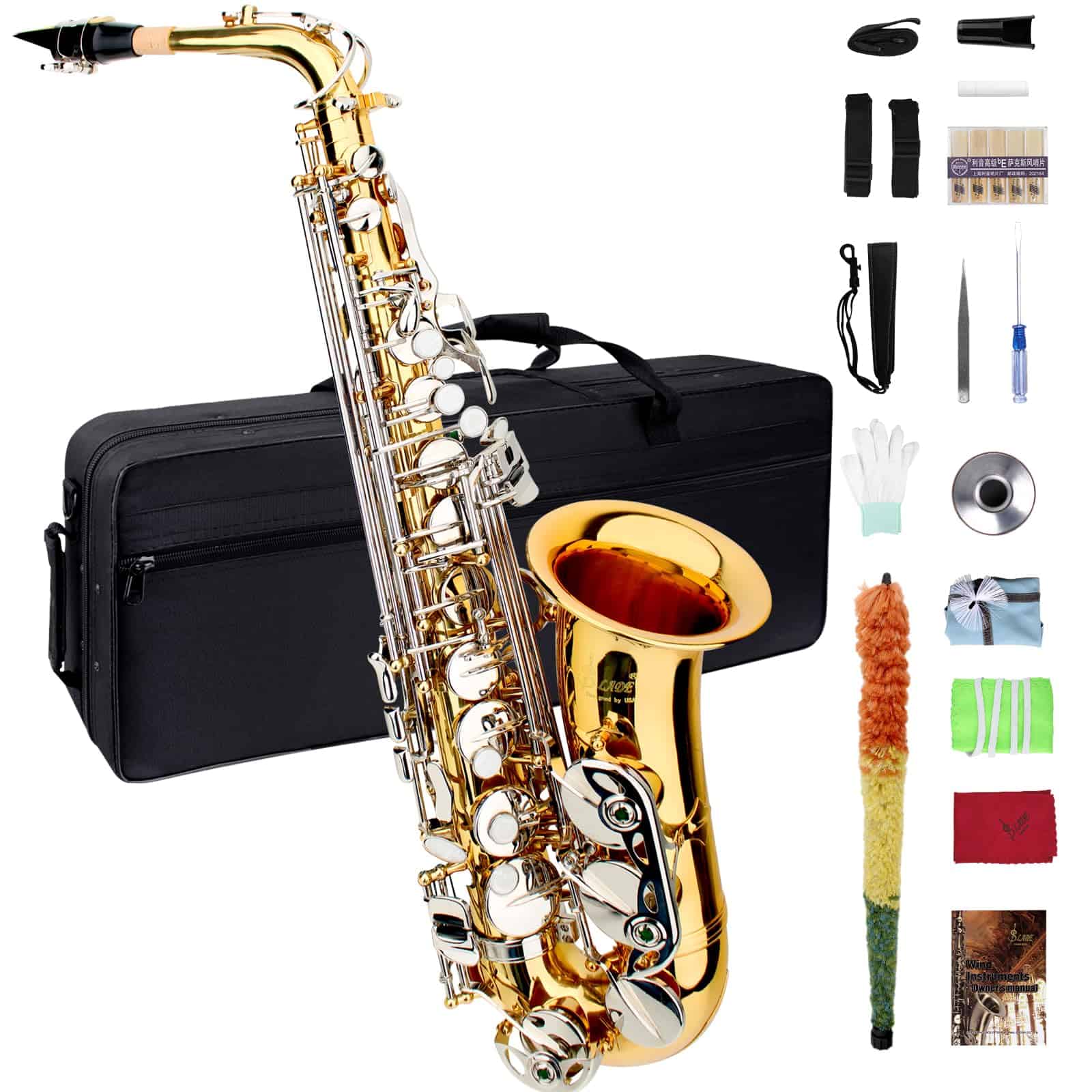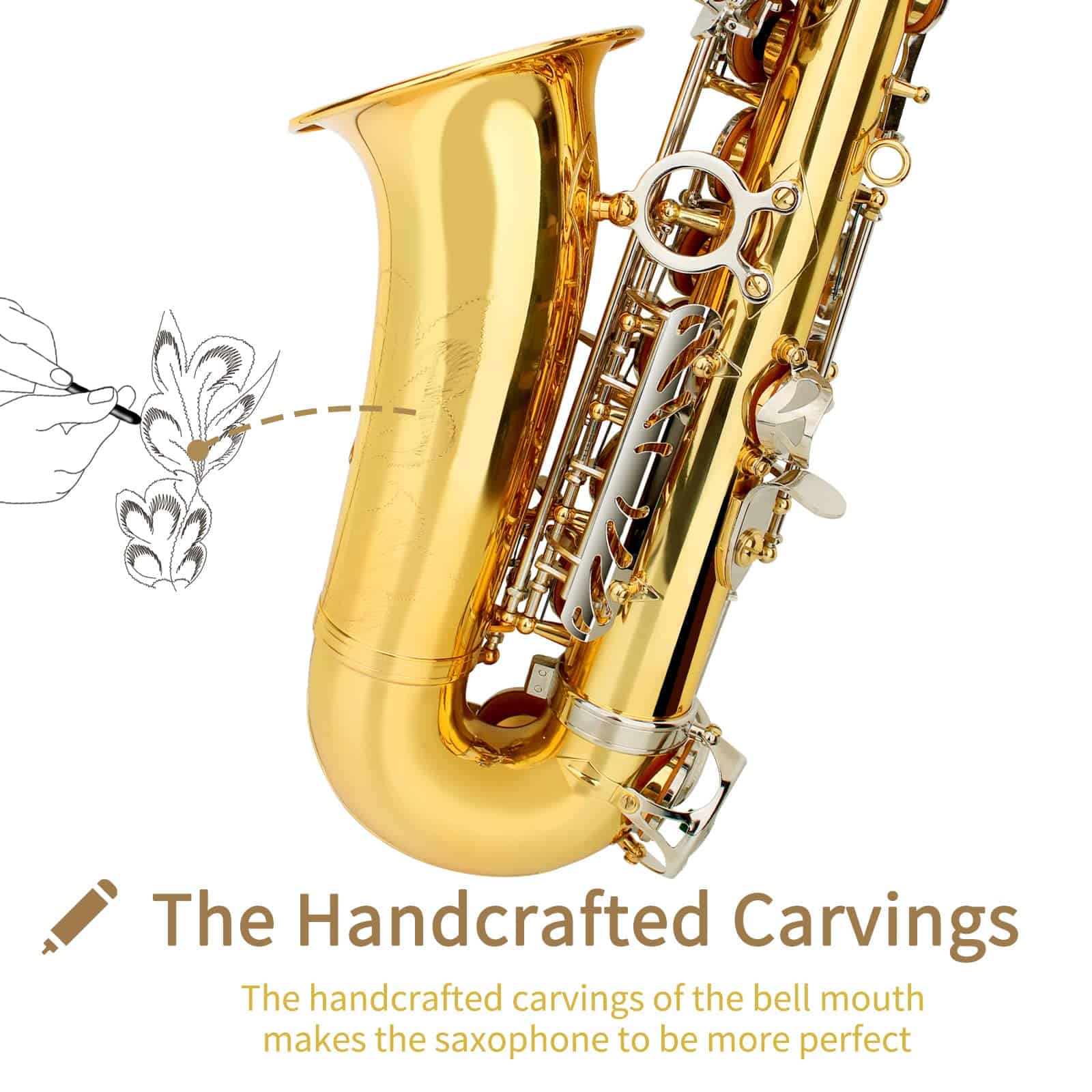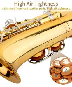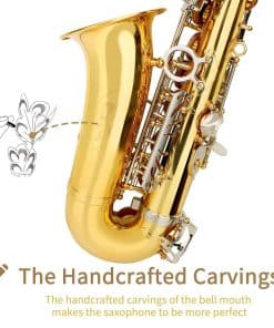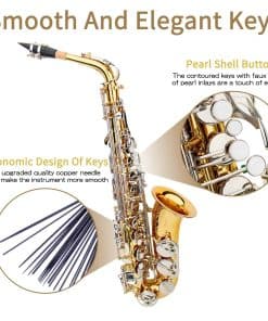 1. Adecuado para cualquier nivel de jugador — El saxofón es adecuado para estudiantes, principiantes, escuela, concierto, jugadores profesionales o cualquier nivel de jugador. Jugadores de todas las edades y niveles de habilidad pueden utilizar nuestro saxofón para estudiantes. 2. Excelente timbre — Ajuste profesional del tono antes de salir de fábrica, excelente calidad de sonido sin ruido, una agradable sorpresa. Y ajuste la llave F y el tubo U grave para mejorar la estabilidad del bajo y satisfacer todas sus necesidades de juego. 3. Material superior — Nuestro saxofón utiliza material de cobre H68 seleccionado. Almohadillas de cuero importadas avanzadas, alta estanqueidad al aire. Utilizó el resorte de aguja de cobre de calidad mejorada para hacer que el instrumento sea más suave. 4. Artesanía — Lacado dorado transparente, pintado en capas múltiples, duradero y apenas destiñe el color. Las teclas contorneadas con incrustaciones de falso nácar son un toque de elegancia. La apariencia tallada a mano y los botones de concha de alta calidad hacen que los saxofones sean más perfectos. 5. Garantía de 12 meses — Si no está satisfecho con los saxofones altos, contáctenos primero. Los instrumentos musicales Meperg tienen una garantía del fabricante de 1 año contra defectos.