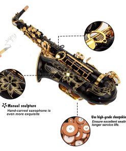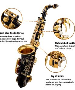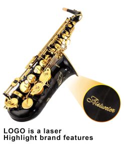 Aisiweier Saxofón Alto en Mi bemol con Llaves Negras/Doradas Grabado en Latón Eb E-Flat Botones de Concha Blanca Instrumento de Viento con Estuche Correa Cepillo