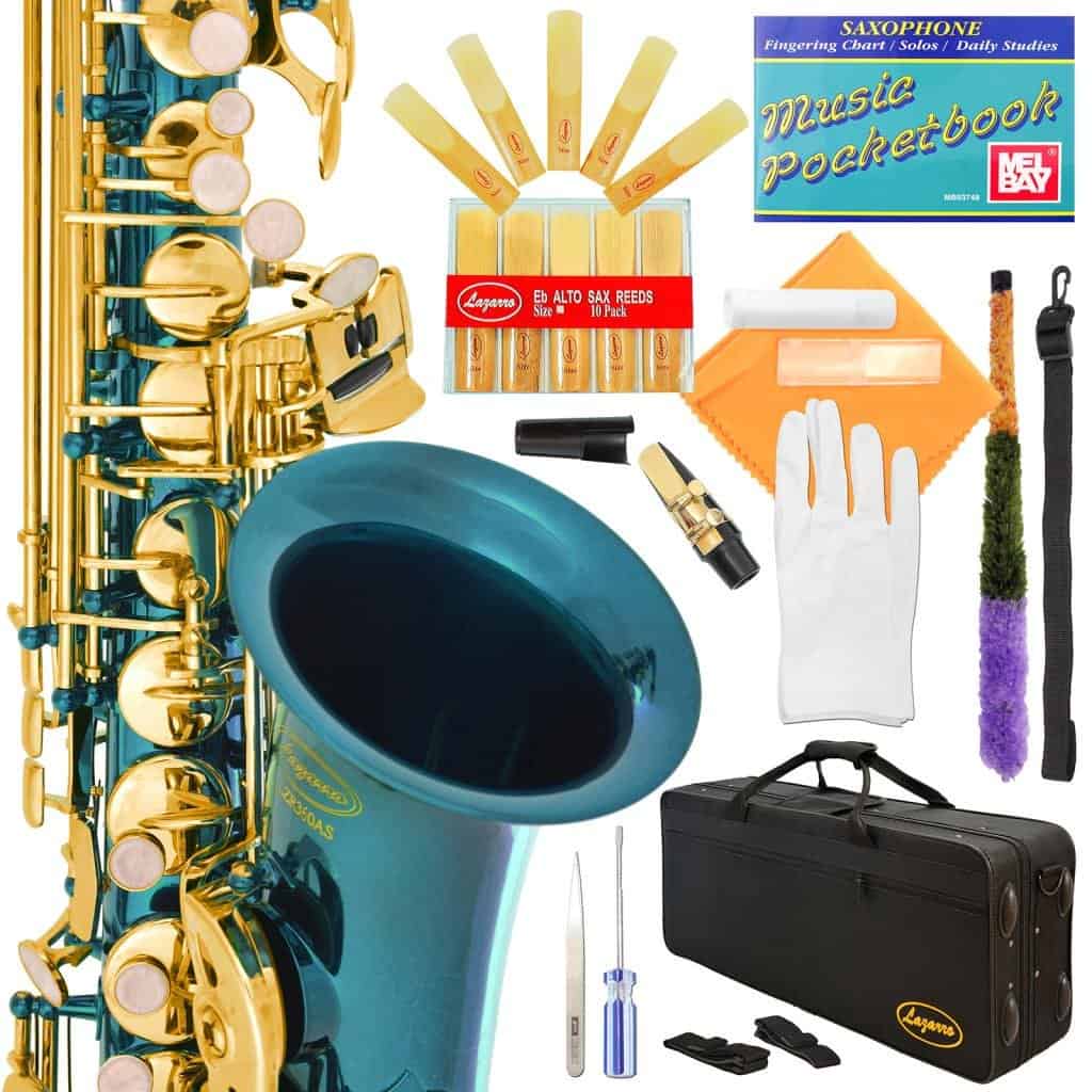 Saxofón Alto Lazarro Profesional Cuerpo Azul Marino Llaves