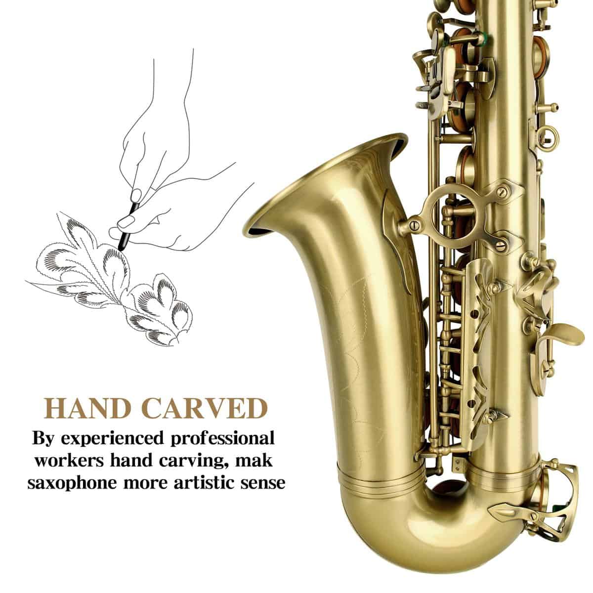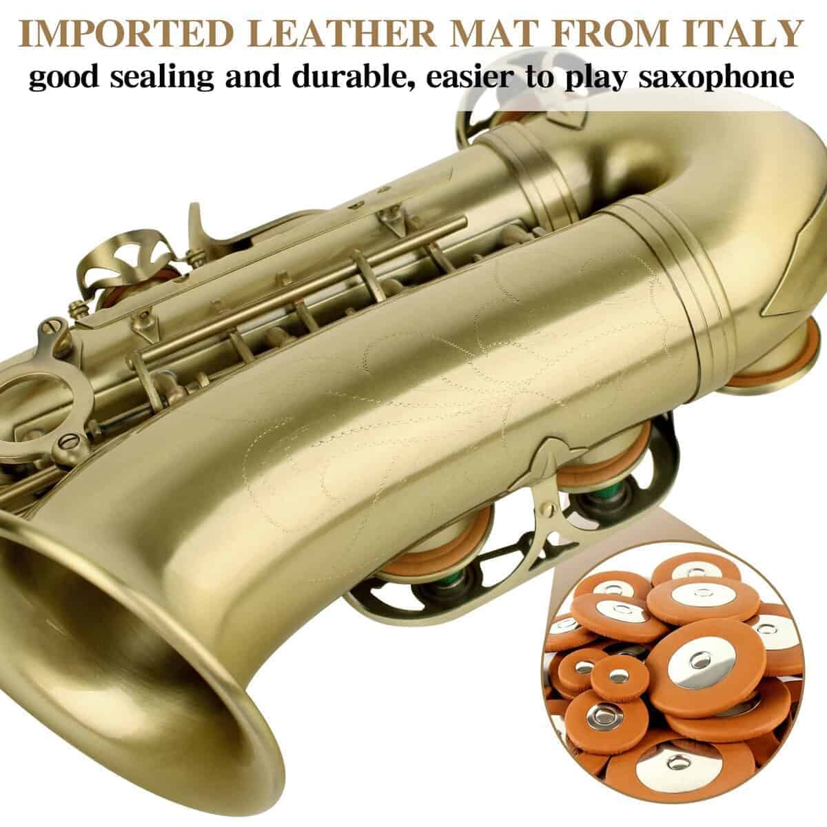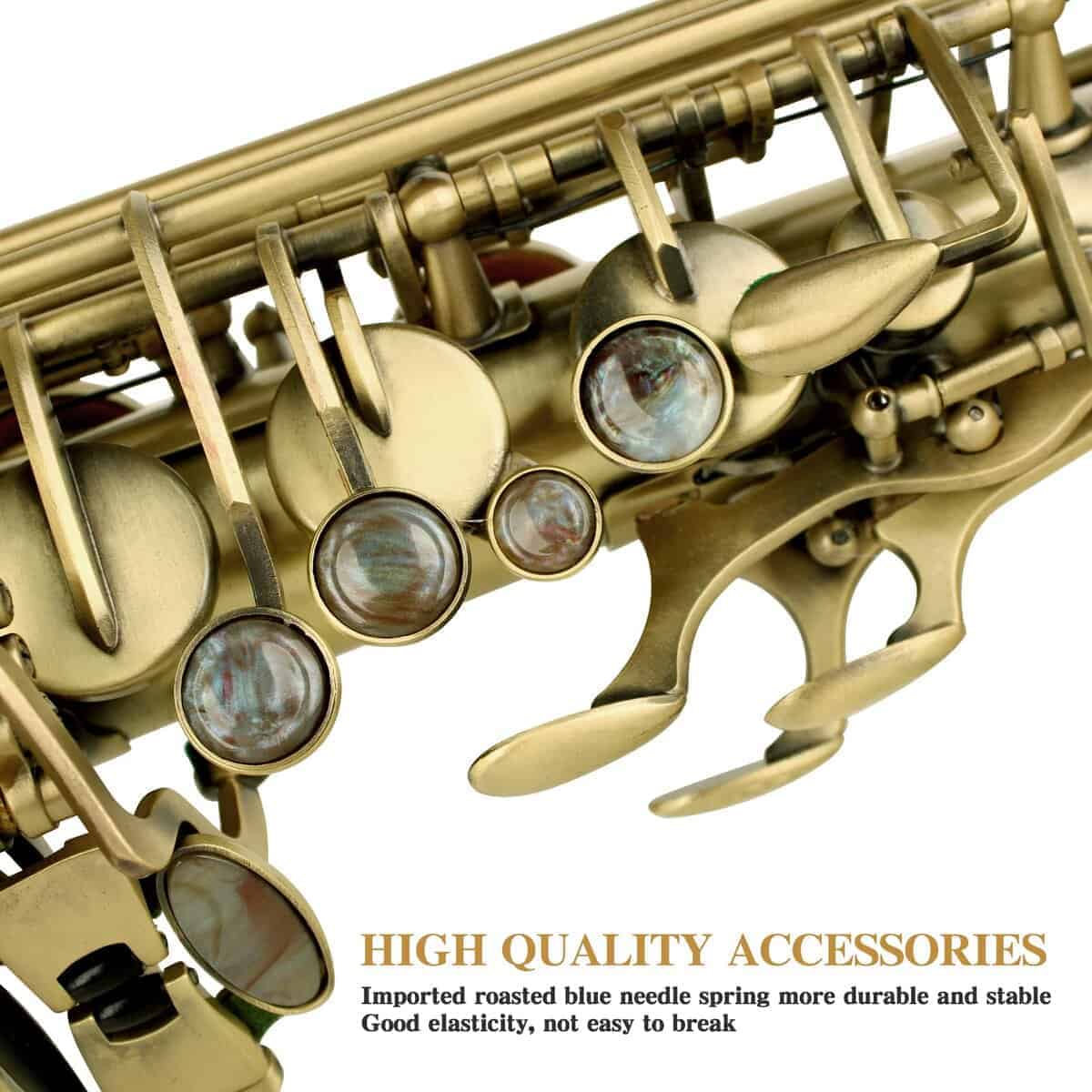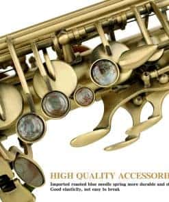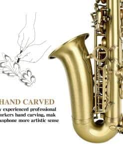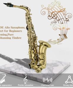 1. Material Superior y Artesanía Electrolítica — La dedicada artesanía en cobre de los instrumentos musicales, recubierta con pintura electrolítica uniforme, es más duradera. El clásico saxofón alto de bronce antiguo y los exquisitos diseños tallados a mano hacen que el saxofón alto sea perfecto. n2. Excelente Sonido — El saxofón principiante SLADE ha sido afinado profesionalmente antes de salir de fábrica, para garantizar que tenga un buen sonido. Y se establece la tecla F y el tubo U de graves para mejorar la estabilidad de los graves y satisfacer todas tus necesidades de interpretación. n3. Kit de Limpieza Completo — Maletín portátil para clase o actuación. Los kits de limpieza de saxofón proporcionan un mantenimiento perfecto para tu instrumento. Contenido del paquete: Saxofón Alto, Estuche de Transporte, Sordinas, Protector de Cabeza de Flauta, 2 Correa para el Hombro, Paño de Limpieza 2, Plumero de Microfibra, Cepillo de Limpieza, Correa de Cuello de Nylon, Grasa de Corcho Premium, 10 Cañas, Pinzas, Destornillador, Guantes, Manual. n4. Saxofón Profesional — Nuestro saxofón para adultos es adecuado para todas las ubicaciones: lecciones, conciertos, orquestas y bandas. Ya seas principiante o un músico profesional, adultos o niños, jugadores de todas las edades y niveles de habilidad pueden usar nuestros saxofones para practicar y tocar. n5. Garantía de 12 Meses del Saxofón SLADE — Si no estás satisfecho con nuestros instrumentos musicales de banda y orquesta, no dudes en ponerte en contacto con nuestro equipo de servicio posventa, te proporcionaremos una solución satisfactoria en 24 horas, y ofrecemos una garantía de un año.