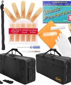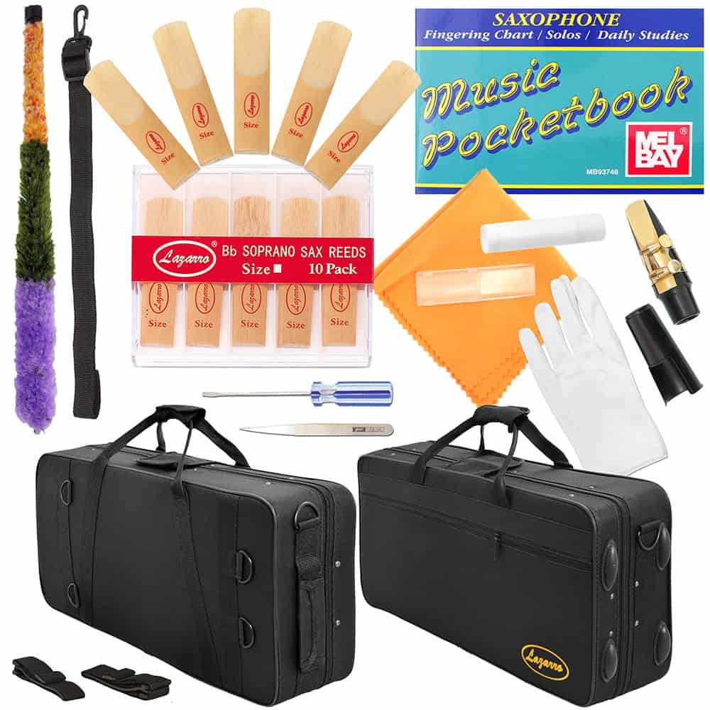 El Saxofón Soprano Recto Bb Lazarro tiene Claves Bb, Llave de Fa Alto. Hecho de LATÓN REAL y tiene Decoración de Campana Grabada a Mano, Almohadillas de Cuero de Alta Calidad con Resonadores Metálicos, Tornillos de Altura de Llave Ajustable y Apoyapulgar Metálico