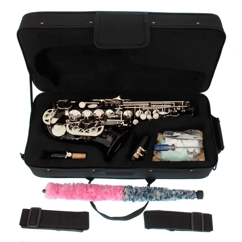 Saxofón Soprano Recto Lazarro Negro-Plateado Bb Con 11