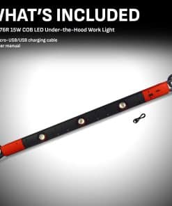 Profesionales y mec�nicos caseros por igual saben que una iluminaci�n adecuada puede hacer que un trabajo sea r�pido y f�cil y una iluminaci�n deficiente puede llevar a la frustraci�n. Con la Luz de Trabajo para Autos Debajo del Cap� Schumacher SL176R 15W COB LED, tendr�s un �rea de trabajo bien iluminada y eficiente. Este sistema de iluminaci�n de �ltima generaci�n cuenta con tres l�mparas ajustables de 45� y se monta f�cilmente debajo del cap� de tu veh�culo gracias a dos brazos extensibles acolchados con espuma. Totalmente port�til gracias a una bater�a de litio de alta calidad de 2600 mAh, el SL176R funcionar� sin enchufes durante hasta 14 horas con una sola carga. Con cada una de las tres luces generando 400 l�menes, disfrutar�s de un �rea de trabajo con alta visibilidad. El SL176R tambi�n cuenta con luces LED COB superiores equipadas con lentes de PC para proteger la vista del usuario, un z�calo de carga micro-USB, indicadores LED de estado de la bater�a, un cable de carga micro-USB a USB y un adaptador de enchufe de pared de CA.