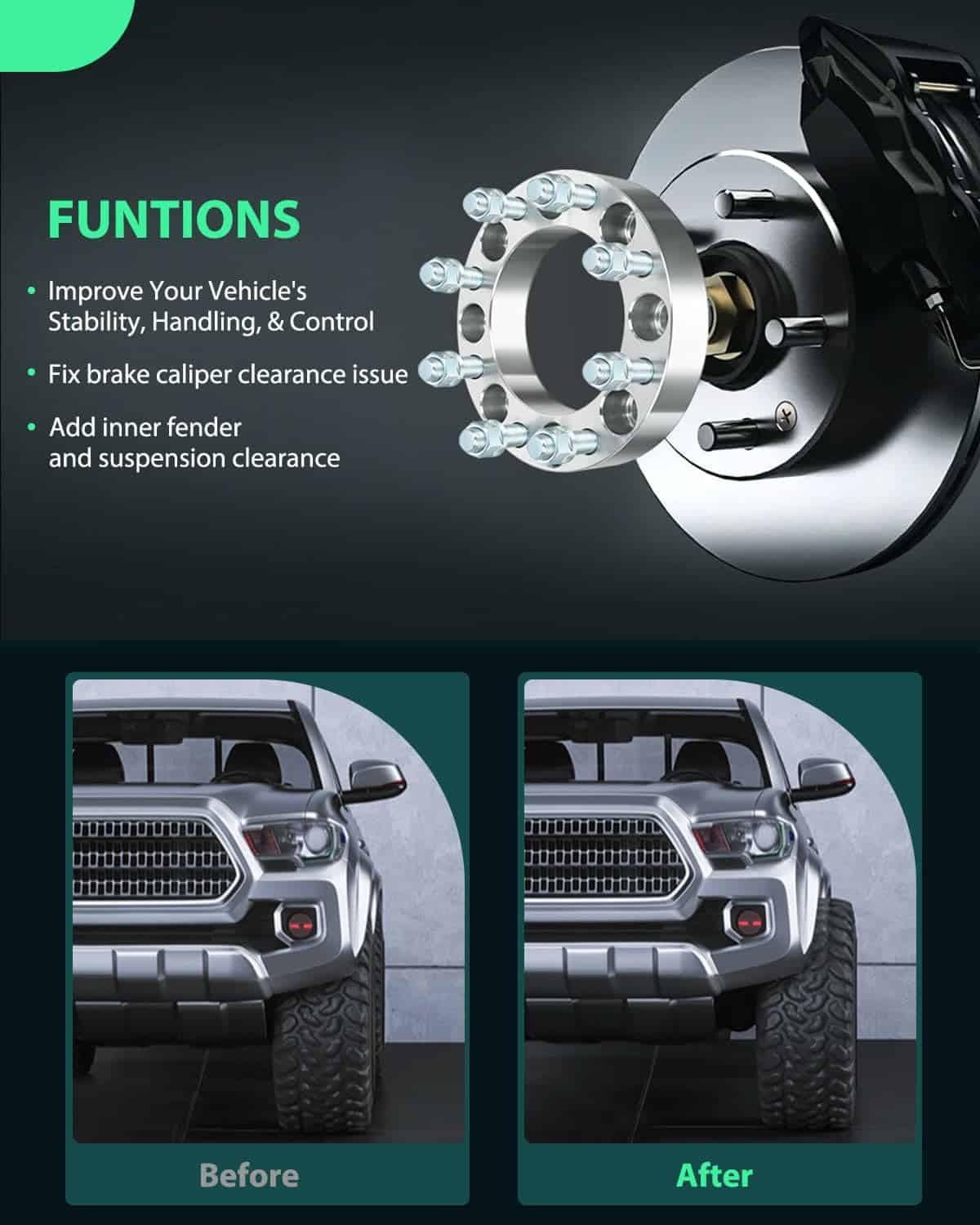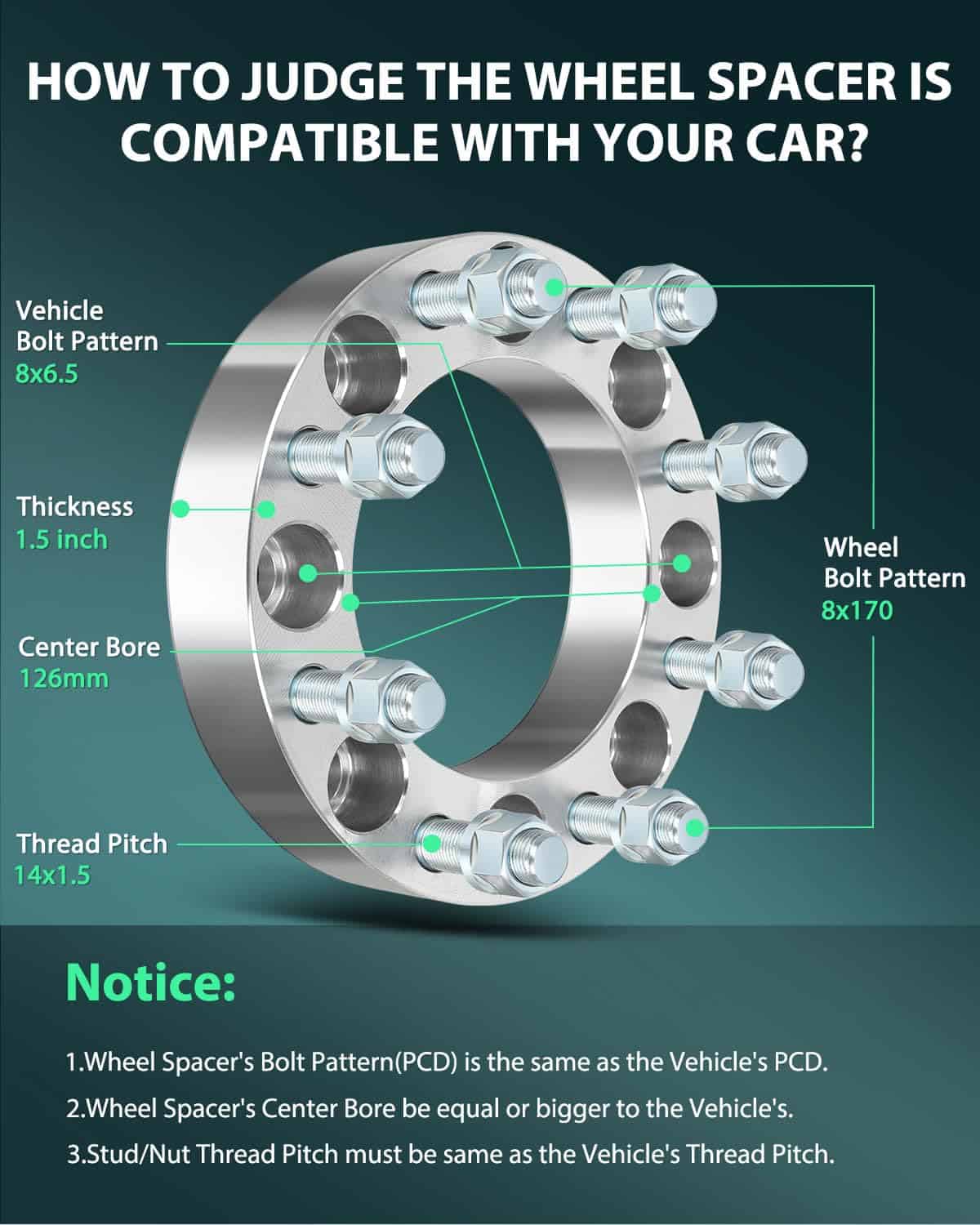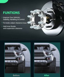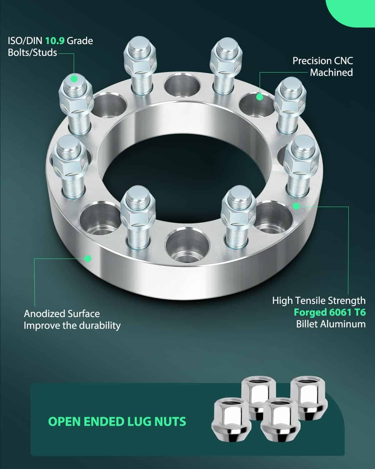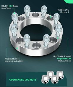 Adaptadores de Rueda 8×6.5 a 8×170 HECHOS PARA: Los Adaptadores de Rueda 1.5″ 8×6.5 a 8×170 son compatibles con Nissan NV3500 2012-2014, Chevrolet Silverado 1500 HD 2001-2006, Ram 3500 2012-2022, Chevrolet K2500 1988-1998, Nissan NV1500 2012-2014, Chevrolet Silverado 2500 HD 2001-2010, Chevrolet K3500 1988-1998, GMC Savana 2500 1997-2014, GMC Sierra 3500 HD 2007-2010, Chevrolet Express 3500 1997-2014, GMC C2500 1988-1998, GMC Yukon XL 2500 2000-2013. Estos Adaptadores de Rueda 8×6.5 a 8×170 están hechos con aluminio de grado aeronáutico forjado en caliente con una resistencia superior al peso que excede el acero. Los pernos ISO/DIN 10.9 forjados, tratados térmicamente y endurecidos, proporcionan resistencia. Bordes estriados rectos para una mejor sujeción durante la instalación. Las piezas de los Espaciadores de Rueda de 1.5″ permiten una mayor colocación externa de las ruedas para aumentar la anchura de la pista de su vehículo para un aspecto agresivo que reduce la brecha entre el neumático y el guardabarros, y una mayor mejora en la capacidad de viraje y una mayor estabilidad. Ingeniería de precisión y específica para un ajuste perfecto y equilibrio de ruedas. NOTA: Es necesario que vuelva a verificar la compatibilidad de su vehículo ANTES de comprar.