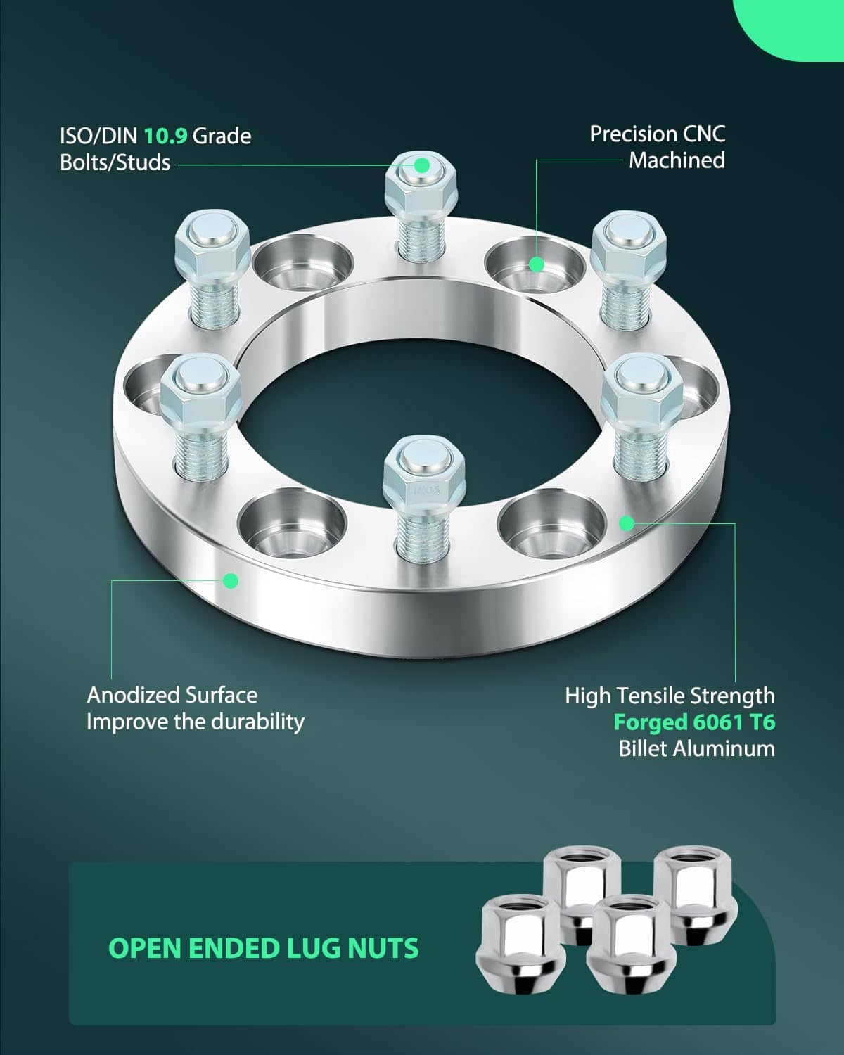 4. Separadores de rueda 6×139.7mm FUERTES Y DURADEROS: Hechos con aluminio forjado en caliente de grado aeronáutico con una relación resistencia-peso que supera al acero. Mientras tanto, los pernos ISO/DIN 10.9 forjados tratados térmicamente y endurecidos brindan resistencia. Bordes estriados rectos para mejor agarre durante la instalación.