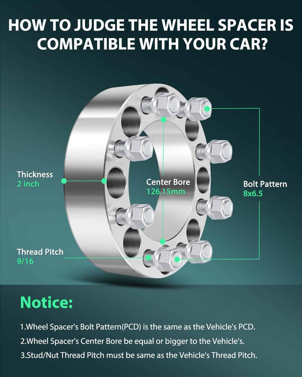 SCITOO 2X Separadores de Rueda de 8×6.5 a 8×6.5 de 2″ 8