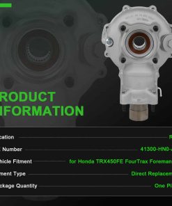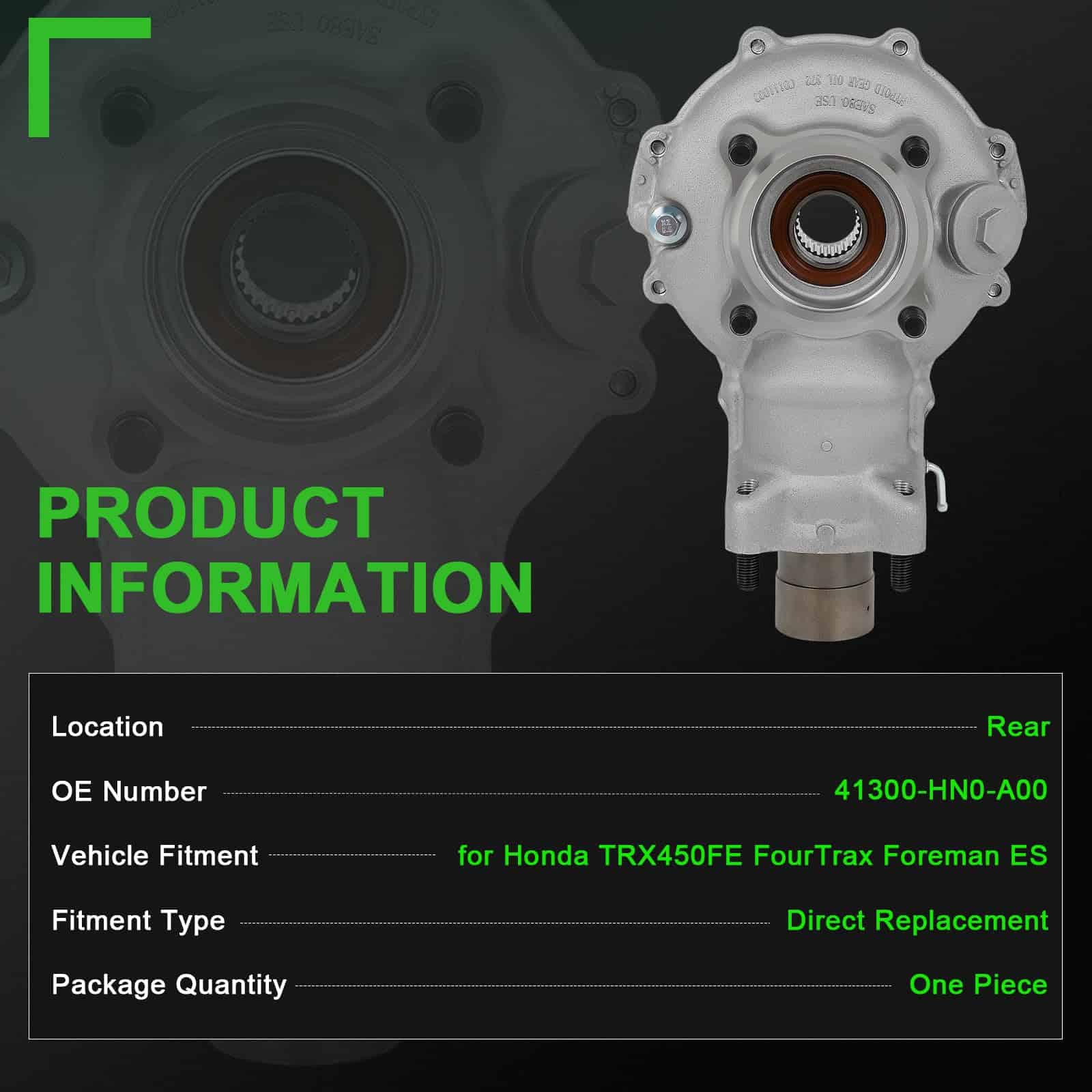Este kit de reemplazo incluye 1 diferencial trasero de ATV con número de pieza 41300-HN0-A00. El kit de diferencia trasera de ATV de alta calidad está fabricado con materiales de alta calidad, lo que le brinda una estructura resistente y una larga vida útil.