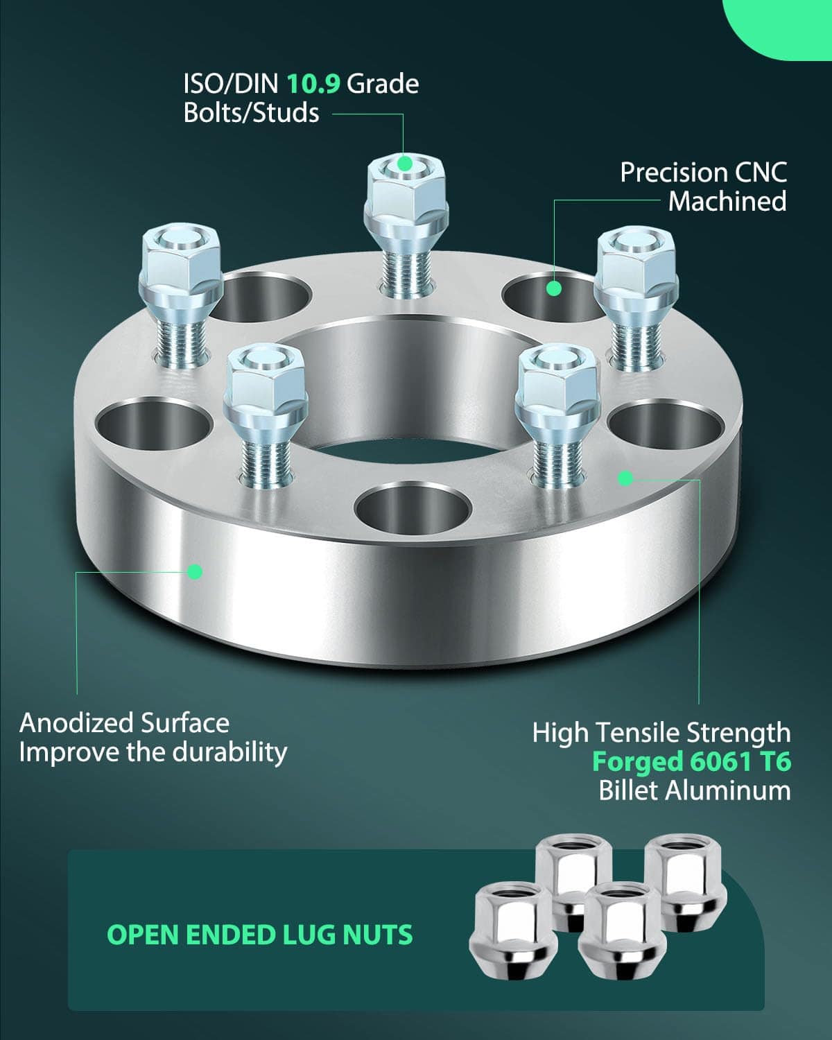 3. Ventaja del Material: Adaptadores de Rueda de 1.5″ hechos de Aluminio de Aviación 6061 que es más resistente y duradero que el moldeo; Pernos de grado 10.9 ISO/DIN con material de acero SCM435 tratado térmicamente para evitar roturas y que no se oxida fácilmente.