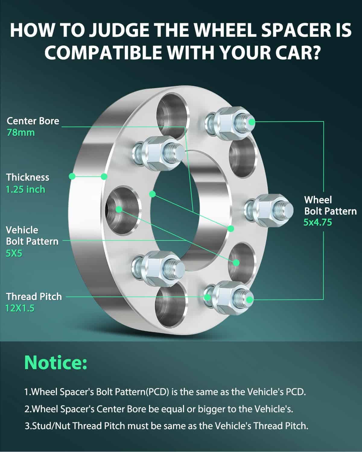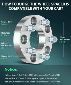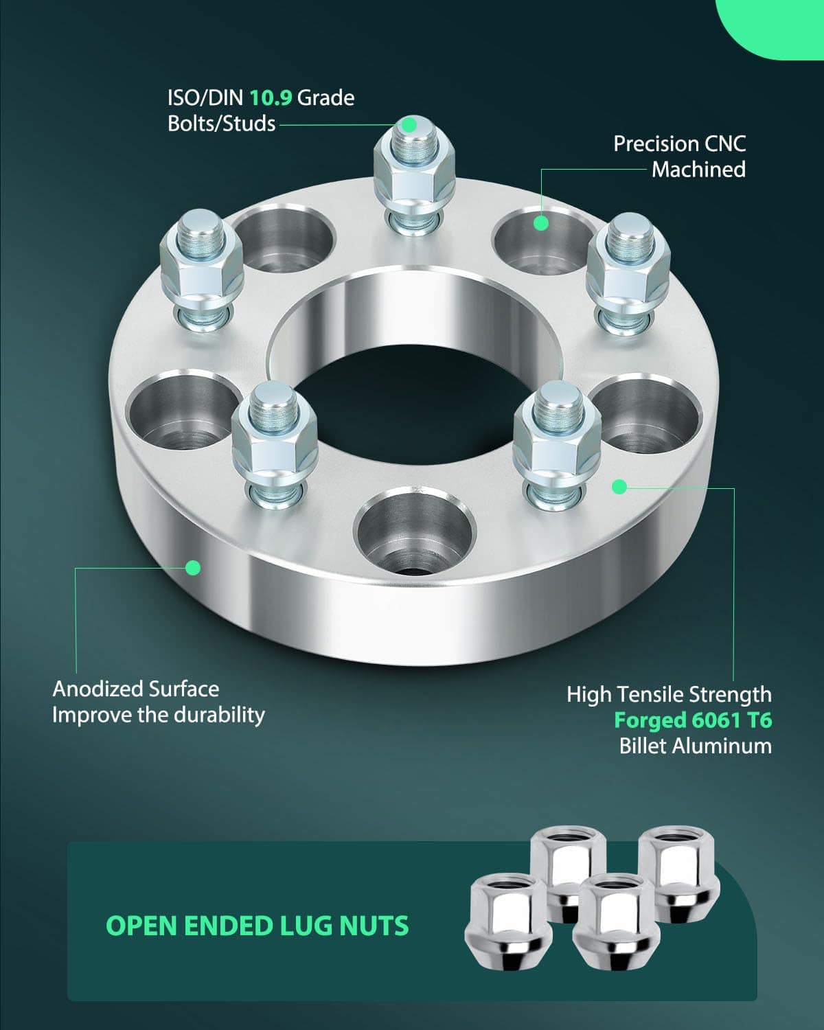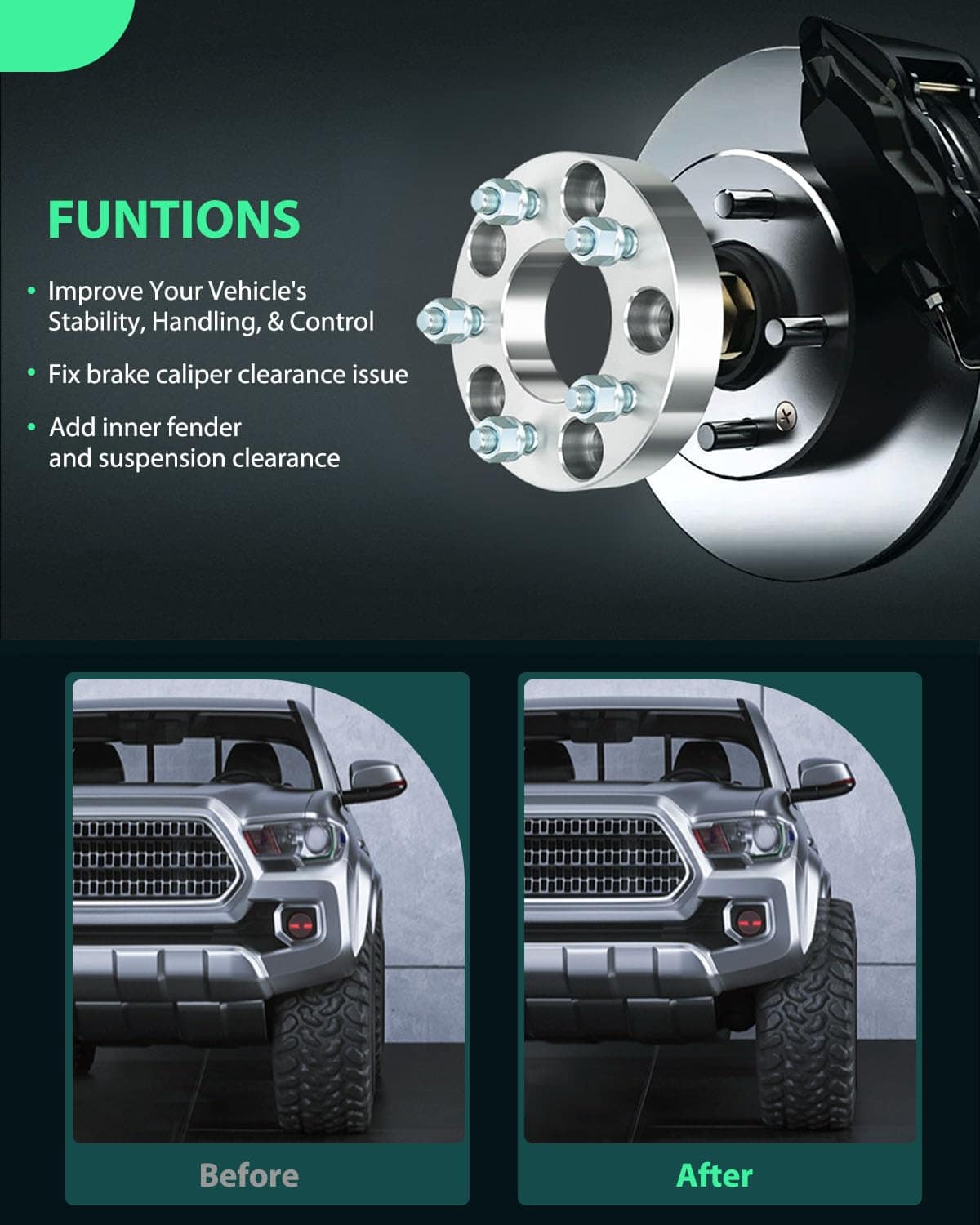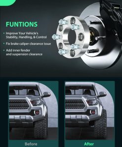Los adaptadores de rueda de 1.25″ están hechos de aluminio de aeronave 6061 T6, más resistente y duradero que el de fundición; Pernos ISO/DIN 10.9 con acero SCM435 tratado térmicamente para evitar roturas, no se oxidan fácilmente. Estos espaciadores de rueda permiten un desplazamiento hacia afuera de las ruedas para aumentar el ancho de la pista de tu vehículo, logrando un aspecto más agresivo que reduce la brecha entre el neumático y el guardabarros, además de mejorar la estabilidad y la conducción. Instalación fácil con mecanizado de precisión CNC para un ajuste perfecto. NOTA: Por favor, vuelva a verificar la compatibilidad de su vehículo antes de comprar.