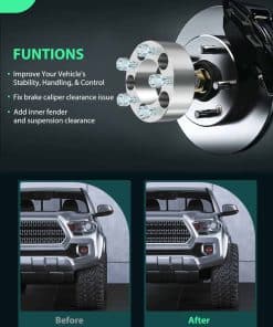 Top Quality Separadores de Rueda fabricados con aluminio forjado en caliente de grado aeronáutico con una relación resistencia-peso que supera el acero. Mientras tanto, los pernos ISO/DIN 10.9 forjados tratados térmicamente y endurecidos brindan resistencia. Las piezas de los Separadores de Rueda permiten una colocación más hacia afuera de las ruedas para aumentar el ancho de la vía de su vehículo, lo que le da un aspecto agresivo que reduce la brecha entre el neumático y el guardabarros, y una mayor estabilidad y mejora de la maniobrabilidad. Instalación fácil Este kit de adaptadores de Separadores de Rueda está diseñado con precisión y para un ajuste y equilibrio de ruedas perfectos, fácil instalación. Si tiene algún problema durante la instalación o el uso, contáctenos, le brindaremos soporte técnico profesional. Nota: SCITOO Auto suministra separadores de rueda para la mayoría de los automóviles, SUV, ATV, camiones y remolques. Seleccione su vehículo (año/marca/modelo/acabado) en la esquina superior izquierda de la página para confirmar la compatibilidad o consulte la información del vehículo en la descripción.