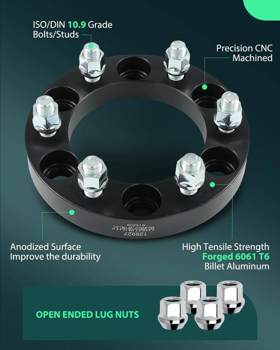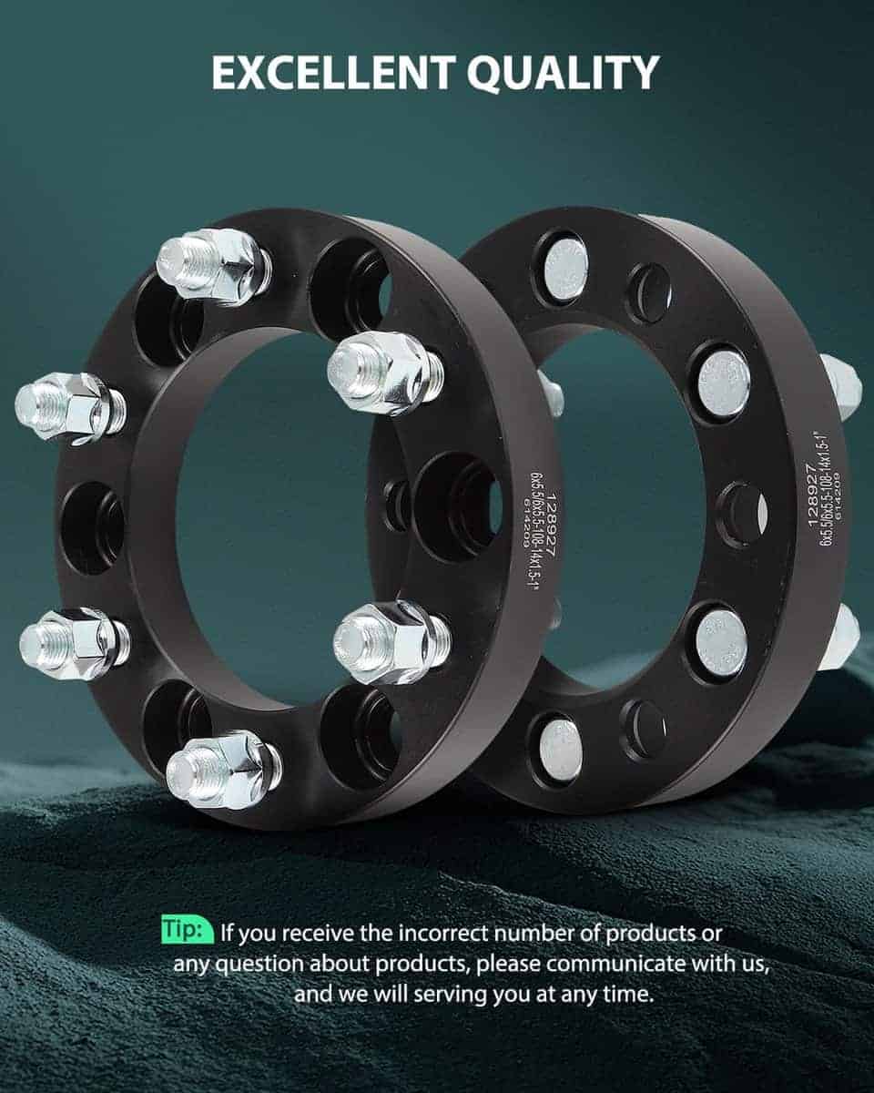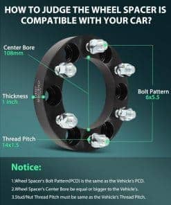 2. 1″ Kit de Separadores de Ruedas Incluye 4Pcs Set de 6×5.5 Separadores de Ruedas. Grosor: 1″ o 25mm, Patrón de Pernos del Vehículo: 6×5.5, Patrón de Pernos de la Rueda: 6×5.5, Diámetro Central: 108mm, Paso de Rosca: 14×1.5.
