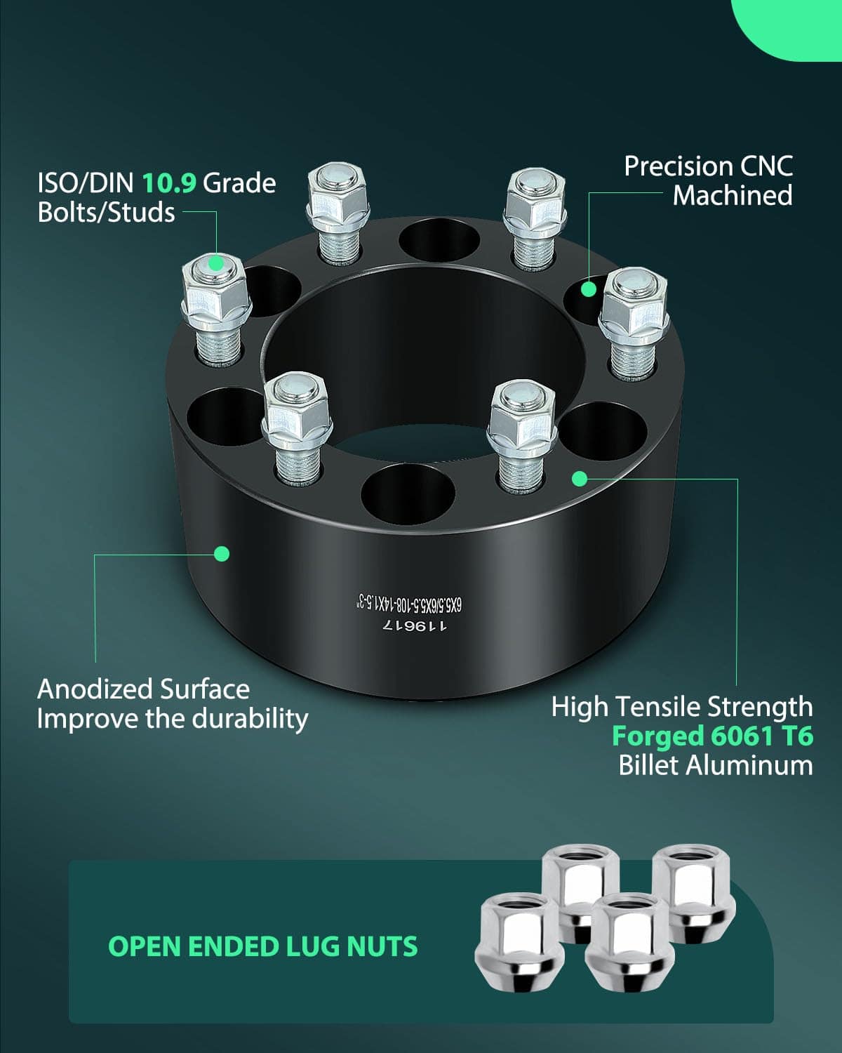 5. FÁCIL INSTALACIÓN: Ingeniería de Precisión y Específica para un Ajuste Perfecto y Equilibrio de Ruedas. NOTA: Es necesario que revise la compatibilidad de su vehículo ANTES de comprar los separadores de rueda 6×5.5 de 3 pulgadas.