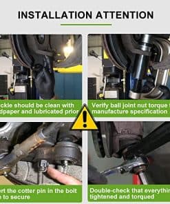 Kit de suspensión de alta calidad hecha de material resistente al calor para aumentar la resistencia y la resistencia al desgaste, con sockets pre-engrasados y botas pre-instaladas para evitar la entrada de suciedad y agua, para un rendimiento confiable y una larga vida útil. Incluye todo lo necesario para la suspensión delantera: brazos de control, brazo pitman, extremos de varilla de dirección, enlaces de barra estabilizadora y juntas de rótula, etc. Todos nuestros repuestos de suspensión vienen pre-engrasados para reducir la fricción y prolongar la vida útil, y no requerirán trabajo adicional. Ofrecemos soporte de reemplazo de 1 año, suministramos kit de suspensión de calidad premium para la mayoría de autos, SUVs, camionetas y remolques. Consulte la compatibilidad seleccionando su vehículo (año/marca/modelo/acabado) en el Buscador de piezas, o vea los vehículos compatibles en la descripción.