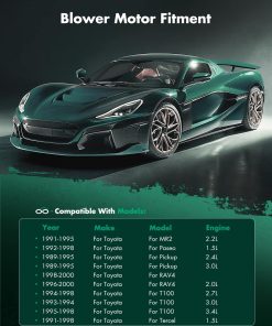 Motor soplador de aire acondicionado HVAC SCITOO con jaula de ventilador delantero 700039 es compatible con varios modelos de automóviles, incluidos Mazda Miata 1990-1997, Mitsubishi Expo 1992-1995, Mitsubishi Montero 1992-1999, Toyota MR2 1991-1995, Toyota Paseo 1992-1998, Toyota Pickup 1989-1995, Toyota RAV4 1996-2000, Toyota T100 1993-1998 y Toyota Tercel 1991-1998. El motor soplador está diseñado para ofrecer una potencia de viento fuerte, sin ruido y con tecnología avanzada que garantiza un funcionamiento eficiente y respetuoso con el medio ambiente. Con una amplia gama de ajustes de velocidad, este motor soplador le permite personalizar el flujo de aire según sus necesidades, brindándole un control total de su comodidad. Reemplace el número OE con facilidad y disfrute de un rendimiento óptimo en su vehículo con este motor soplador HVAC de alta calidad.