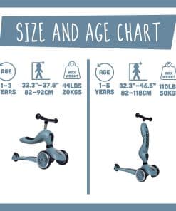 El Highwaykick 1 es el primer patinete / patinete con asiento 2 en 1 que se puede modificar sin el uso de herramientas, en todo el mundo. Tiene la altura de asiento más baja de todos los patinetes disponibles en el mercado. La altura del asiento también se puede ajustar más sin necesidad de herramientas. El Highwaykick 1 también tiene un cojín de seguridad que actúa como una especie de protección contra vuelcos, para una seguridad adicional.