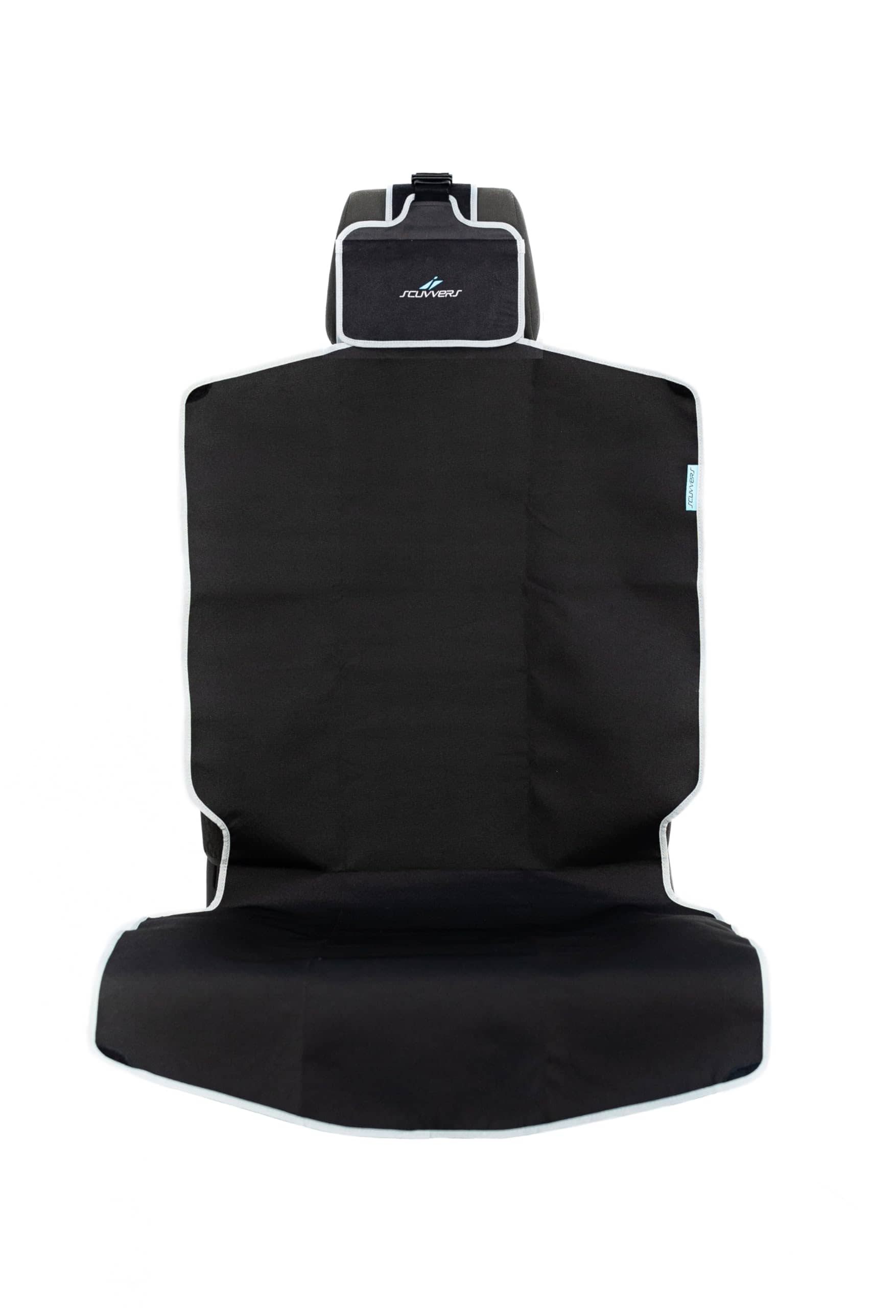 No ocultes los asientos de tu coche con cubiertas feas, protégelos con Scuvvers. Scuvvers son los primeros protectores de asiento para coches que se guardan en una bolsa compacta detrás de tu reposacabezas, en la guantera o en el bolsillo de la puerta cuando no los necesitas, y se despliegan en segundos cuando los necesitas. Nuestro clásico Scuvver negro es elegante pero funcional, proporcionando protección contra el sudor, la suciedad, el agua y el protector solar. Los Scuvvers SMART están diseñados para personas que están demasiado ocupadas manteniéndose en forma y divirtiéndose como para preocuparse por proteger los asientos de su coche. Disfruta del aspecto y tacto de los asientos de tu coche cuando no estén sucios y protégelos cuando lo estén, simplemente gira tu Scuvver y despliégalo. ¡Así de fácil! Y cuando tu Scuvver esté sucio o mojado, simplemente despréndelo y límpialo con una manguera o mételo en la lavadora y cuélgalo para que se seque. SOSTENIBLE Cada Scuvver está hecho de alrededor de 35 botellas de plástico, evitando que terminen en vertederos u océanos. Incluso utilizamos un proceso de teñido que utiliza un 90% menos de agua y produce un 94% menos de CO2. ¡Nuestro embalaje es reciclado y utiliza tintas a base de soja! ELEGANTE Seamos sinceros, las fundas de asiento nunca lucen tan bien como los asientos originales de tu coche. Inventamos Scuvvers para mantener tus asientos como nuevos, sin tener que ocultarlos todo el tiempo. El Scuvver completo incluye todo lo que necesitas para proteger un asiento: 1x Cubierta de Scuvvers – Negro 1x Arnés de Scuvvers – Negro – El tamaño SMALL de Scuvvers está diseñado para ser compatible con coches que tienen reposacabezas separados (regulables en altura). Consulta nuestra tabla de tallas para obtener información sobre cómo medir tus reposacabezas y asegurarte de que solicitas la talla correcta.
