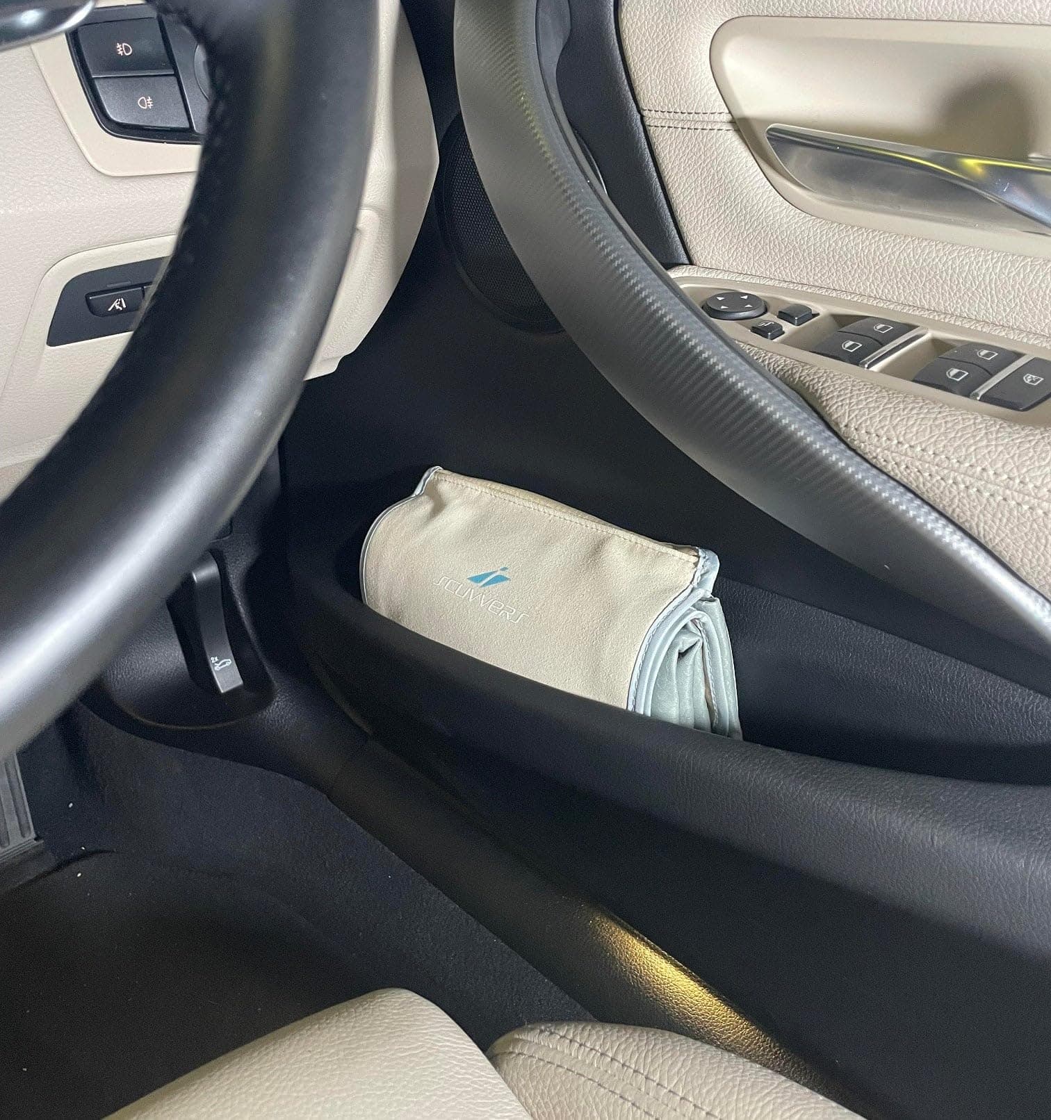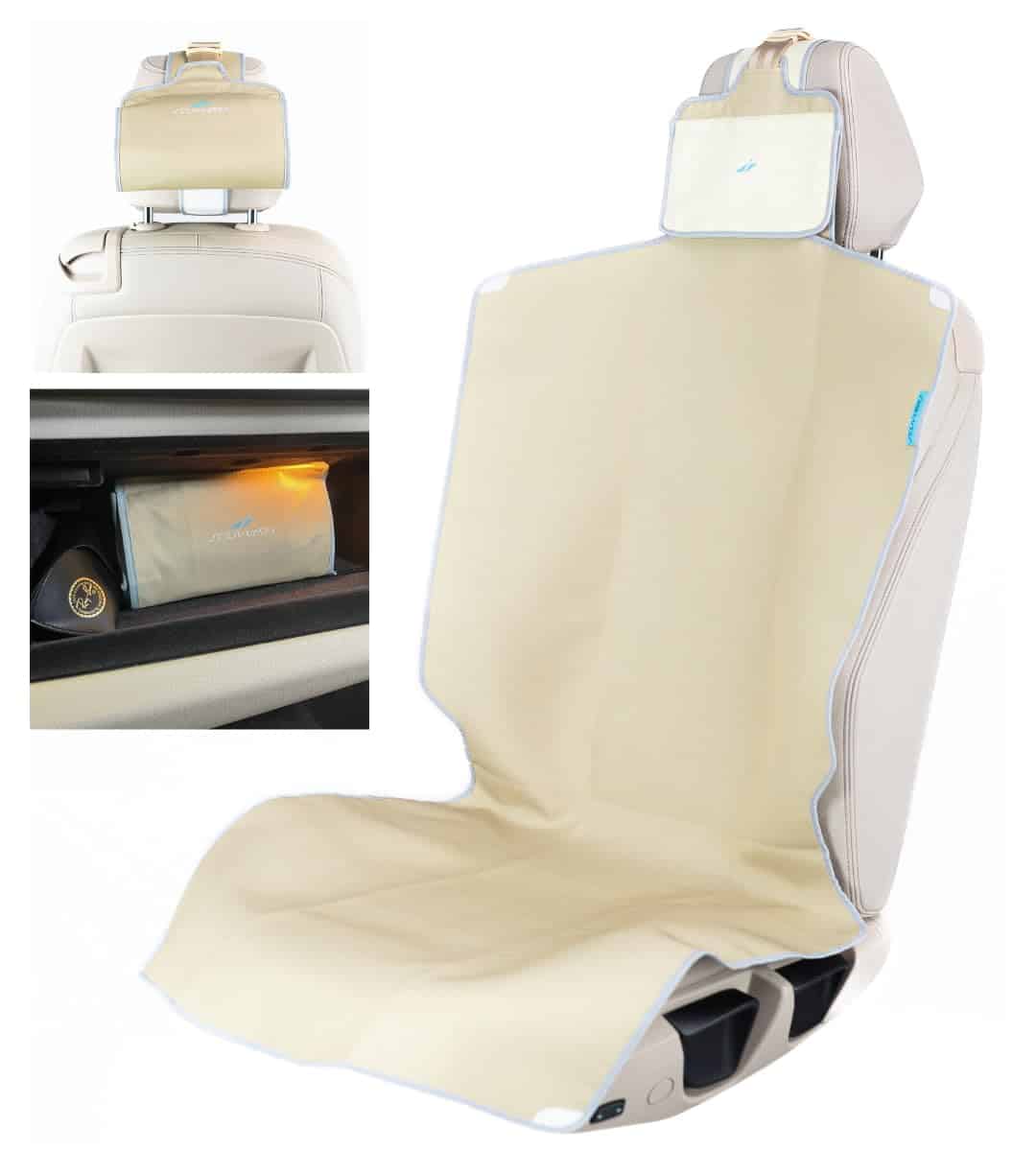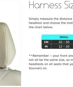 No ocultes tus asientos de automóvil bajo cubiertas feas, protégelos con Scuvvers. Scuvvers son los primeros protectores de asiento plegables del mundo, guardados de forma ordenada en una bolsa compacta detrás de tu reposacabezas, en la guantera o en el bolsillo de la puerta cuando no los necesites, y desplegados en segundos cuando los necesites. Scuvvers son impermeables, resistentes y sostenibles: cada Scuvvers evita que 35 botellas de plástico terminen en vertederos u océanos. Nuestro juego de protector de asientos y arnés Scuvvers de color Crema es perfecto para proteger tus asientos de color más claro, pero también funciona como un excelente color de contraste para un asiento de color oscuro. Protege tu interior del sudor, suciedad y derrames. ¡Prepárate para una protección duradera de los asientos! El Scuvver completo incluye todo lo que necesitas para proteger un asiento: 1x Cubierta de Scuvvers en Crema 1x Arnés de Scuvvers en Crema – Tamaño PEQUEÑO Especificaciones técnicas: Hecho de textiles reciclados post-consumidor al 100% Parte trasera de silicona de alta calidad para evitar deslizamientos Lavable a máquina Se guarda en una bolsa, que se puede desprender del arnés del reposacabezas Scuvvers están diseñados para ser compatibles con todos los autos que tienen reposacabezas separados (ajustables en altura). Consulta nuestra Tabla de tallas para obtener información sobre cómo medir el reposacabezas de tu asiento de auto para asegurarte de que ordenes el tamaño correcto.