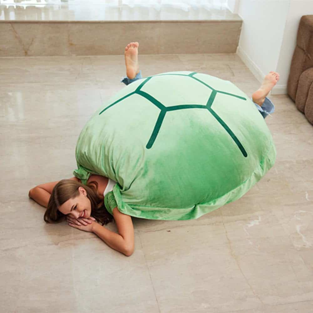 2. Almohada de peluche adorable gigante de caparazón de tortuga vestible. Simula la imagen de un caparazón de tortuga. ¡El espacio en el medio te permite entrar y estirar tus extremidades! Dulcemente escondido en su pequeño caparazón de tortuga. Conviértete en una tortuga.