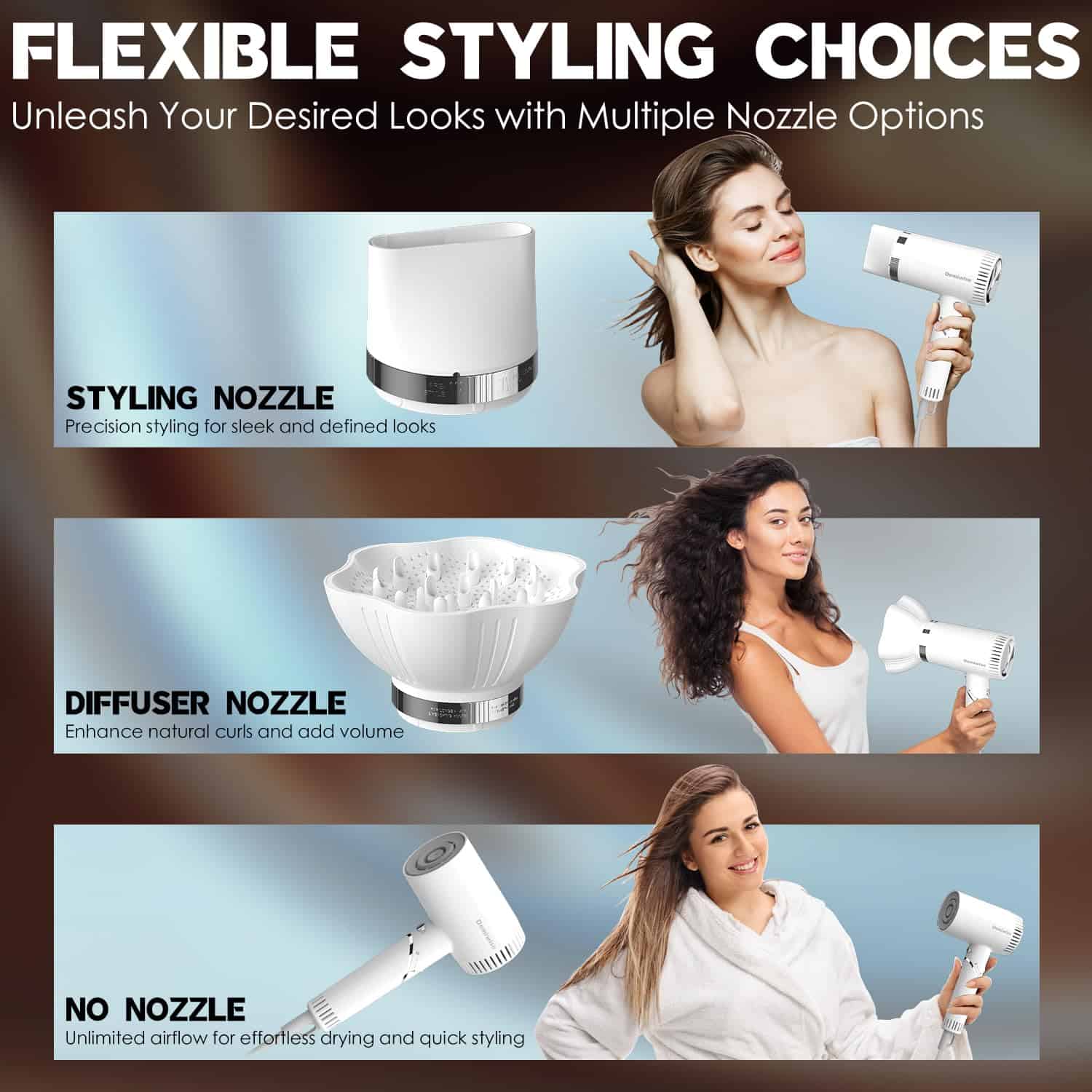 El secador de pelo de alta velocidad Demiwise utiliza un potente motor sin escobillas de 110,000 RPM, proporcionando un fuerte flujo de aire de hasta 18 m/s para un secado rápido de tu peinado. Al mismo tiempo, su diseño silencioso garantiza una experiencia de usuario tranquila, permitiéndote disfrutar de tranquilidad durante el proceso de estilizado. Ya sea que seas un profesional o un usuario doméstico, este secador de pelo es una elección ideal.