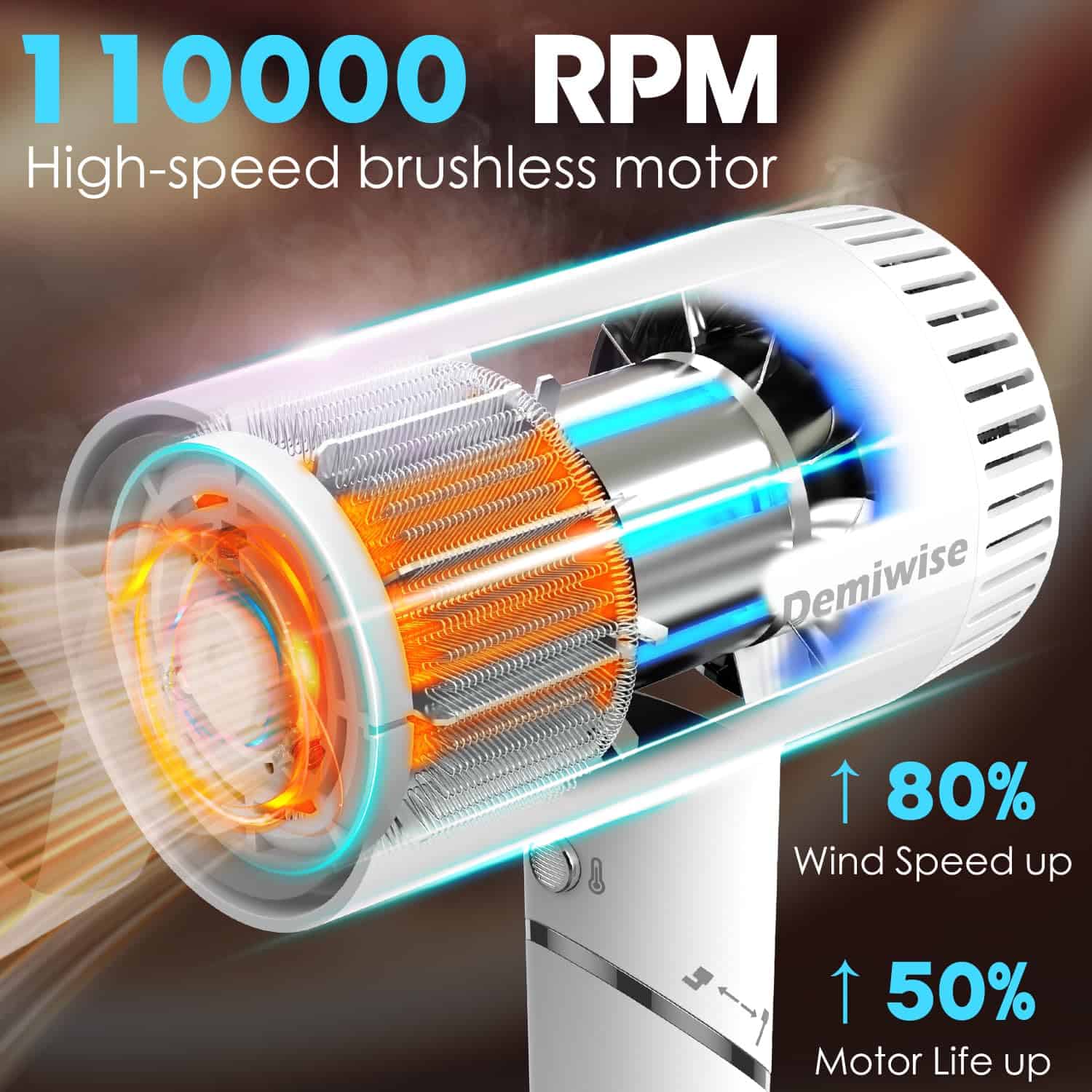 Secador de pelo de alta velocidad Demiwise 110,000 RPM para