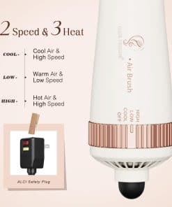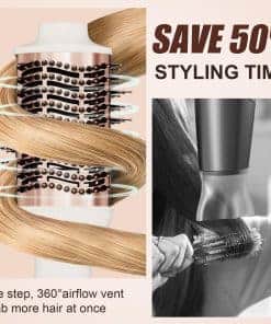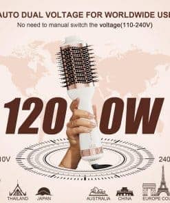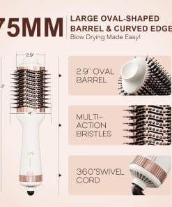 Secador de pelo profesional de gran tamaño de 1200W todo en uno, cepillo secador de pelo caliente 110v-220v para un alisado suave y sin frizz, secado y estilo rápido. El Secador de Pelo Profesional de Gran Tamaño de 1200W es el arma perfecta para darle a tu cabello el mejor cuidado. Su potente motor de 1200w seca eficientemente el cabello. Con un barril ovalado de 75mm (2.9), puede hacer grandes secciones a la vez y darle mucho volumen. La salida de aire única en 360 ofrece un 50% más de área de secado envolvente para un secado más rápido. Con tecnología cerámica e iónica, este cepillo secador de pelo ayuda a reducir el daño por el uso excesivo de calor con una distribución uniforme del calor. Los iones negativos pueden penetrar rápidamente en el cabello para ayudar a retener la humedad, nutrir el cabello dañado, reducir el frizz y la electricidad estática para un cabello más suave y brillante. Con 2 velocidades y 3 ajustes de temperatura, este cepillo secador de pelo ofrece opciones flexibles para bloquear el peinado deseado. Cuenta con un cable giratorio de 5.9 pies para mayor comodidad. Este cepillo secador de pelo es el regalo perfecto para cuidar el cabello en casa y obtener resultados de salón. Contáctanos para servicio de garantía a través de las opciones «TU PEDIDO» y haz clic en «contactar al vendedor».