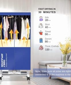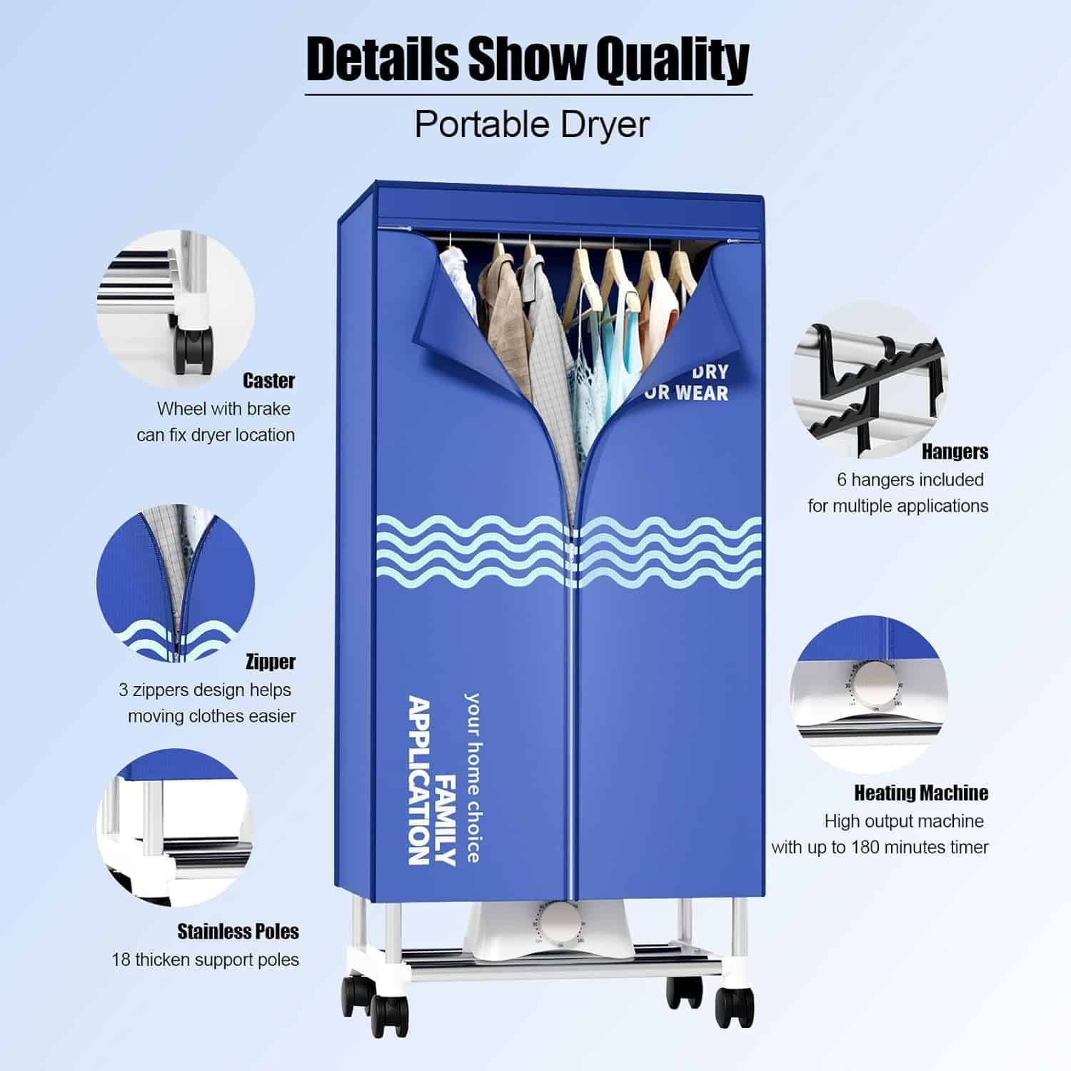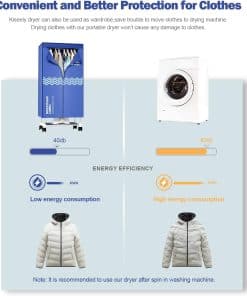 2. Secadora de Alto Rendimiento con Temporizador La secadora portátil Kiseely utiliza una máquina de secado de alto rendimiento, que puede secar la ropa más rápido que la mayoría de las otras secadoras portátiles en el mercado. La función del temporizador te permite dejar la secadora funcionando sin preocuparte de desperdiciar energía.
