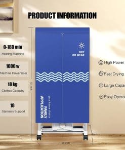 1. Gran Capacidad de Secado Todos nuestros postes de metal han sido fortalecidos, los bastidores de metal pueden soportar hasta 18KG de peso. La secadora Kiseely utiliza material retardante de llama y proporciona una capacidad extra grande para ropa, toallas, edredones y mucho más.