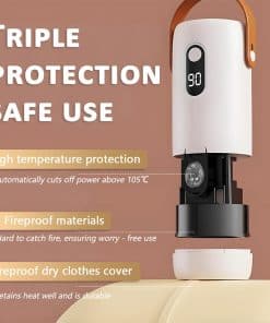 Secadora de Ropa Mini Portátil SL Nevnmoe: Esta secadora de ropa mini portátil tiene un tamaño increíblemente compacto y es ligera, lo que la hace fácil de llevar a cualquier lugar. Su tecnología de secado por circulación de aire caliente permite que el aire caliente penetre rápidamente desde los puños hasta el cuello de la prenda. La secadora cuenta con triple protección contra incendios: protección interna contra altas temperaturas, salida de aire de materiales retardantes de llama y resistentes al fuego, y una cubierta de ropa de alta temperatura. La secadora es simple de operar, con un sistema de control de un botón y un temporizador de 90 minutos. La cubierta de ropa que la acompaña se puede quitar fácilmente para facilitar la limpieza. Perfecta para viajes, apartamentos pequeños, RVs y espacios limitados de lavandería, pero no apta para prendas de gran tamaño. ¡Hazte con la secadora de ropa mini portátil SL Nevnmoe y disfruta de la practicidad y eficiencia que ofrece!
