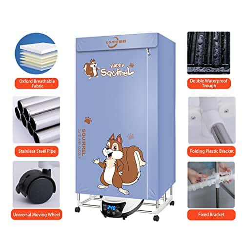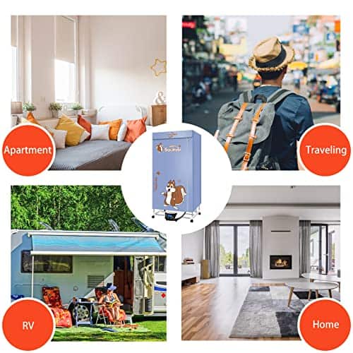 Esta secadora portátil cuenta con material resistente a altas temperaturas, calefacción por convección de 360 grados y una cubierta de tela de alta calidad. Con ruedas para facilitar su movilidad.