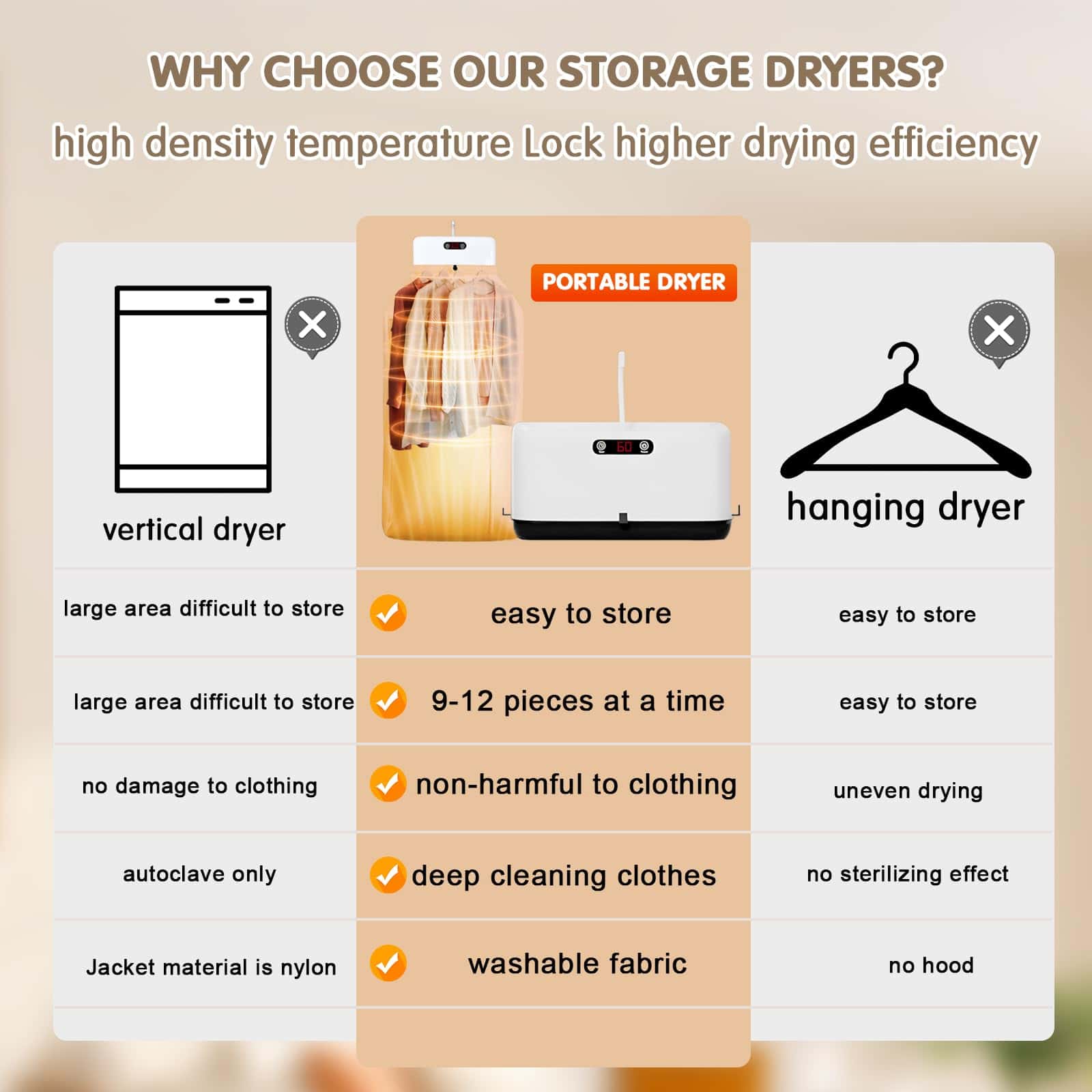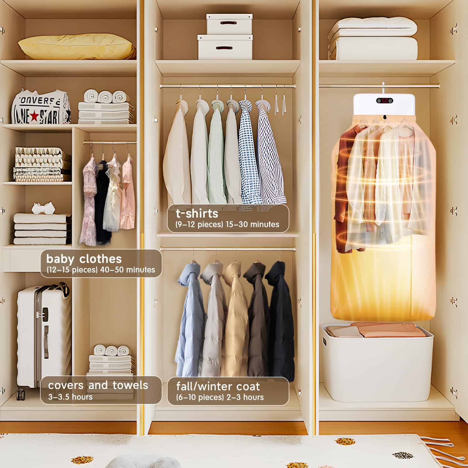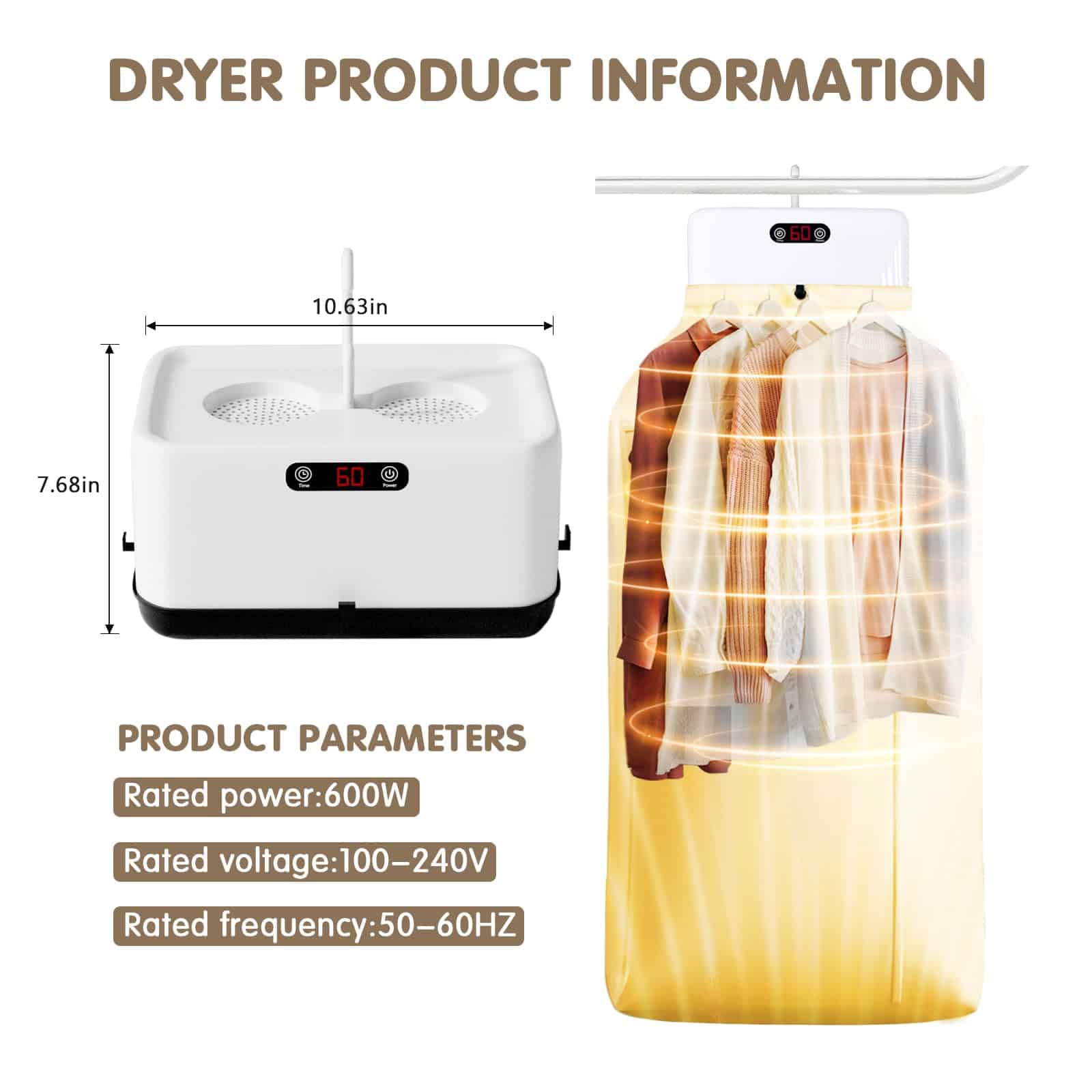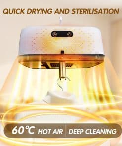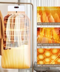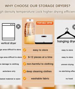 Secadora de ropa portátil con bolsa de secado mini, ideal para usar en espacios reducidos, pisos, caravanas y viajes. Esta secadora portátil seca la ropa de forma rápida y eficiente, utilizando calor y flujo de aire para eliminar la humedad de la ropa. Con calentamiento instantáneo y termostato automático, esta mini secadora para ropa puede secar la ropa rápidamente. La secadora de ropa portátil es ligera y compacta, lo que la hace fácil de mover, aumentando la eficiencia y satisfaciendo tus necesidades de secado. Puede utilizarse como secadora de ropa de viaje principal en pisos, residencias universitarias y otros espacios pequeños, así como secadora de ropa portátil auxiliar en una lavandería doméstica. Con luz UV LED integrada, proporciona una limpieza impecable y pureza a tu colada. La secadora de ropa portátil tiene un temporizador incorporado y una función de bajo ruido, permitiéndote disfrutar de una experiencia de lavado tranquila sin molestar a tu entorno. Además, esta mini secadora para ropa es más pequeña que las secadoras tradicionales y utiliza menos energía para funcionar, siendo capaz de contener varias cargas al mismo tiempo y adecuada para secar una amplia gama de materiales.