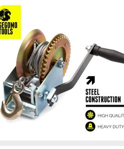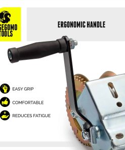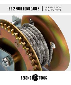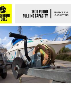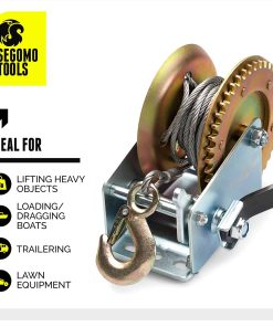 The Segomo Tools Heavy Duty 1600 Pound Manual Two Way Ratchet Hand Winch is a reliable and durable tool for various applications. Made of high quality, heavy duty steel construction, this manual winch features high carbon steel gears (4.1:1) for superior corrosion resistance and long-lasting life. It has a 1600 pound pulling capacity, making it ideal for horizontal pulling tasks such as loading and dragging boats, lawn equipment, and trailering. The 32.2 foot long cable provides ample reach for different jobs. The ergonomic handle grip ensures comfortable and easier cranking, reducing fatigue during use. The mooring hook is equipped with a safety pawl for two-way ratcheting, allowing for forward and reverse operation. Please note that this hand winch is not designed for vertical lifting. With its quality construction and multiple applications, the Segomo Tools Hand Winch is a versatile and reliable tool that will last for years.