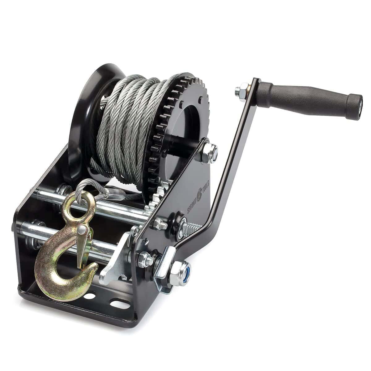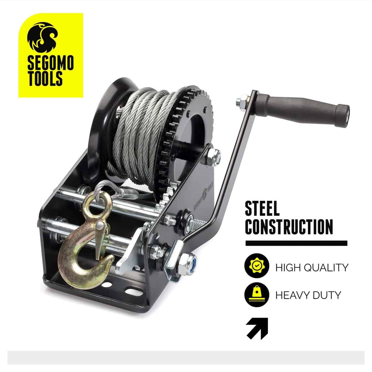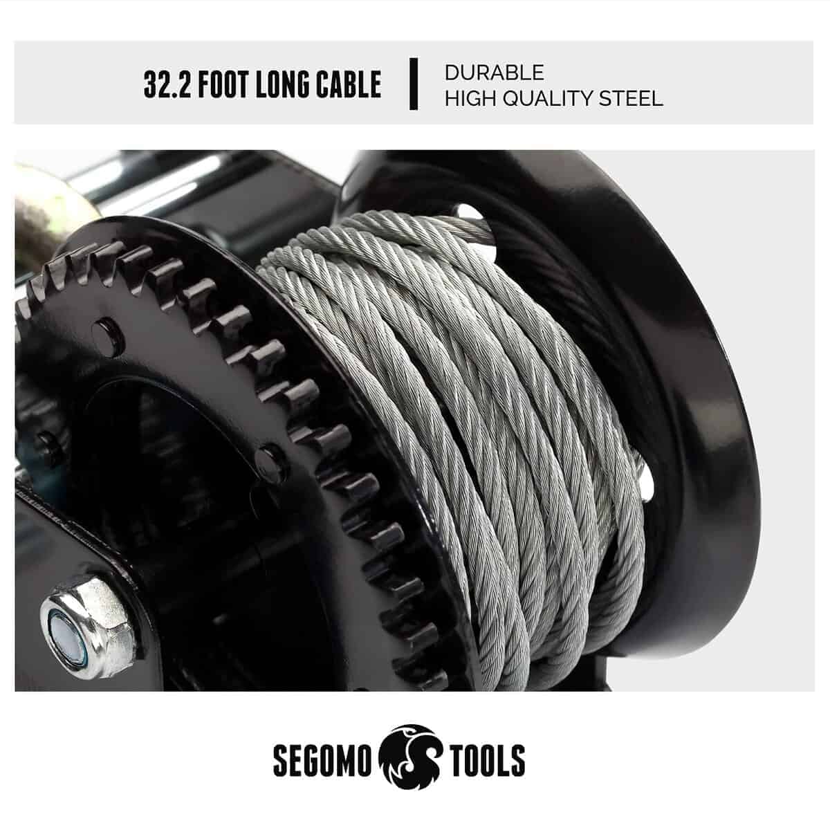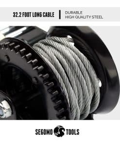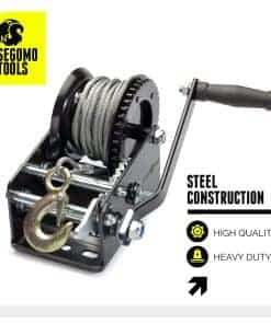 3. Malacate de Mano con Cable. Nuestro duradero malacate de manivela de alambre de acero de alta calidad cuenta con un cable de 9.8 pies de largo.