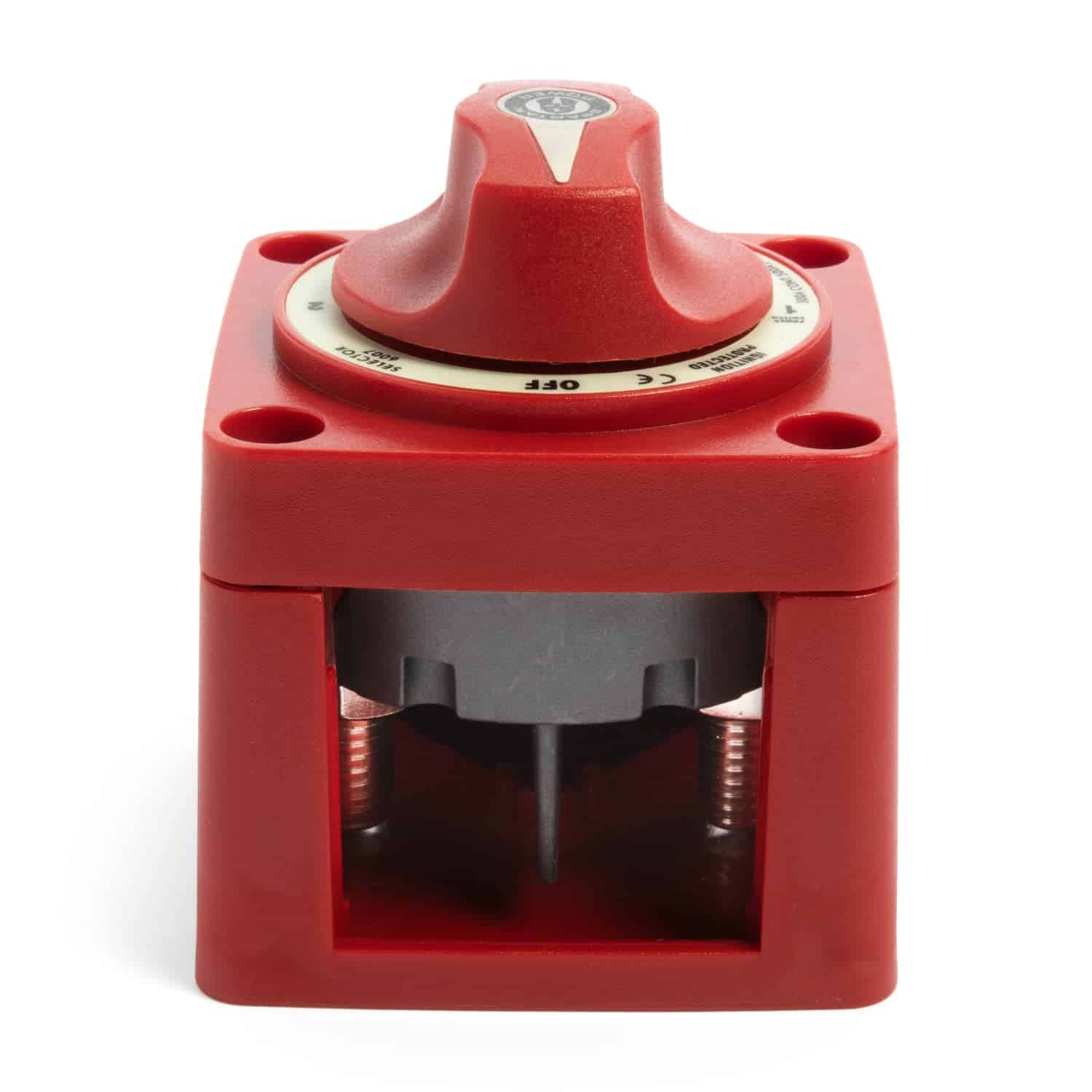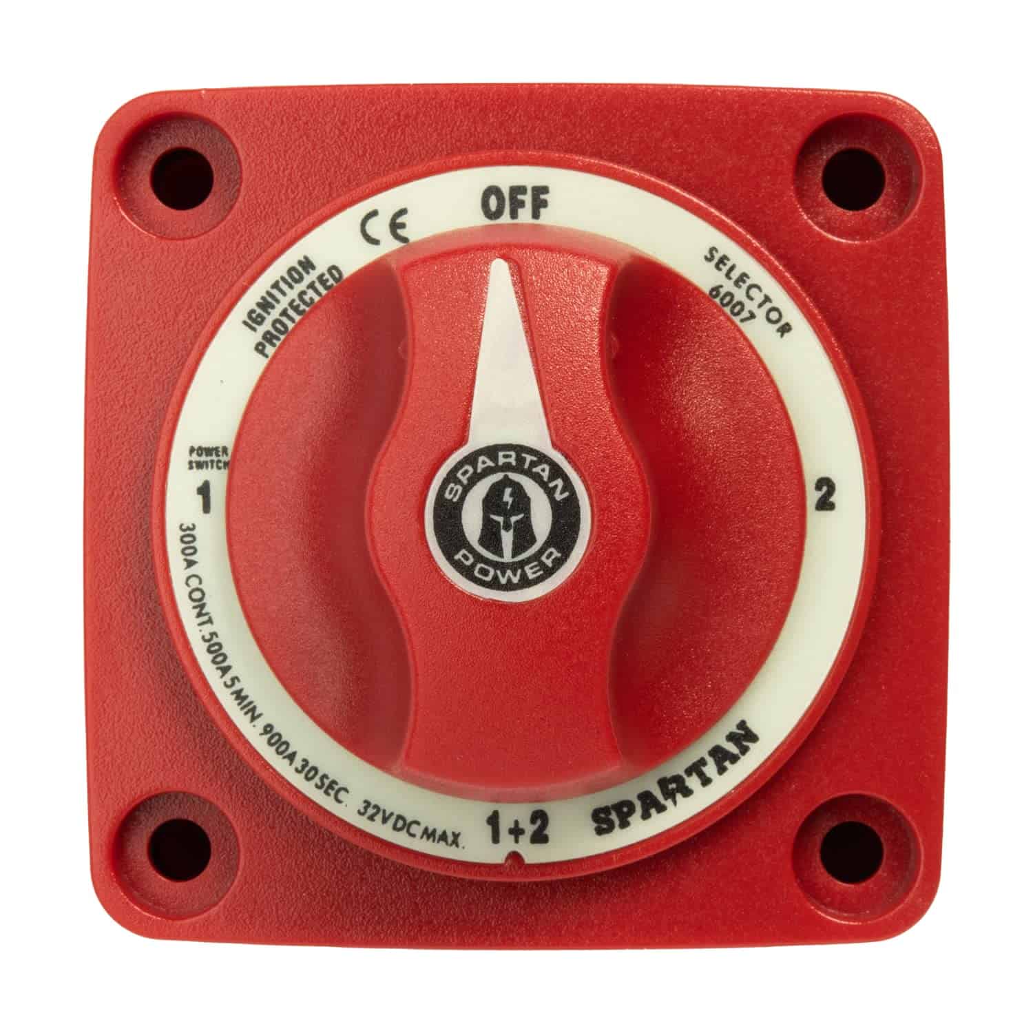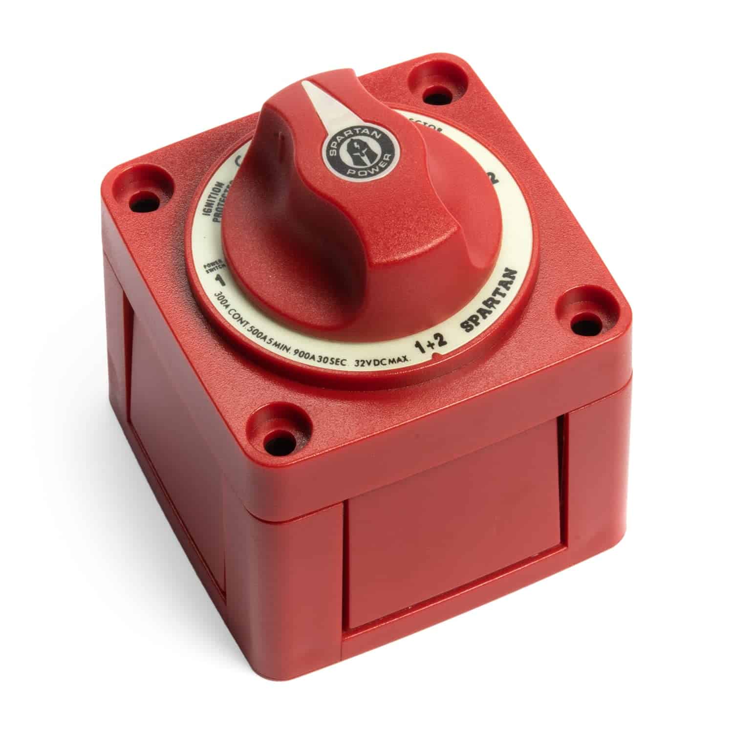 2. PROTEGIDO CONTRA IGNICIÓN: El interruptor de batería Spartan Power tiene una capacidad de arranque de 900A durante 30 segundos, 500A durante 5 minutos y una capacidad continua de 300A. Voltaje de operación máximo: 32V.
