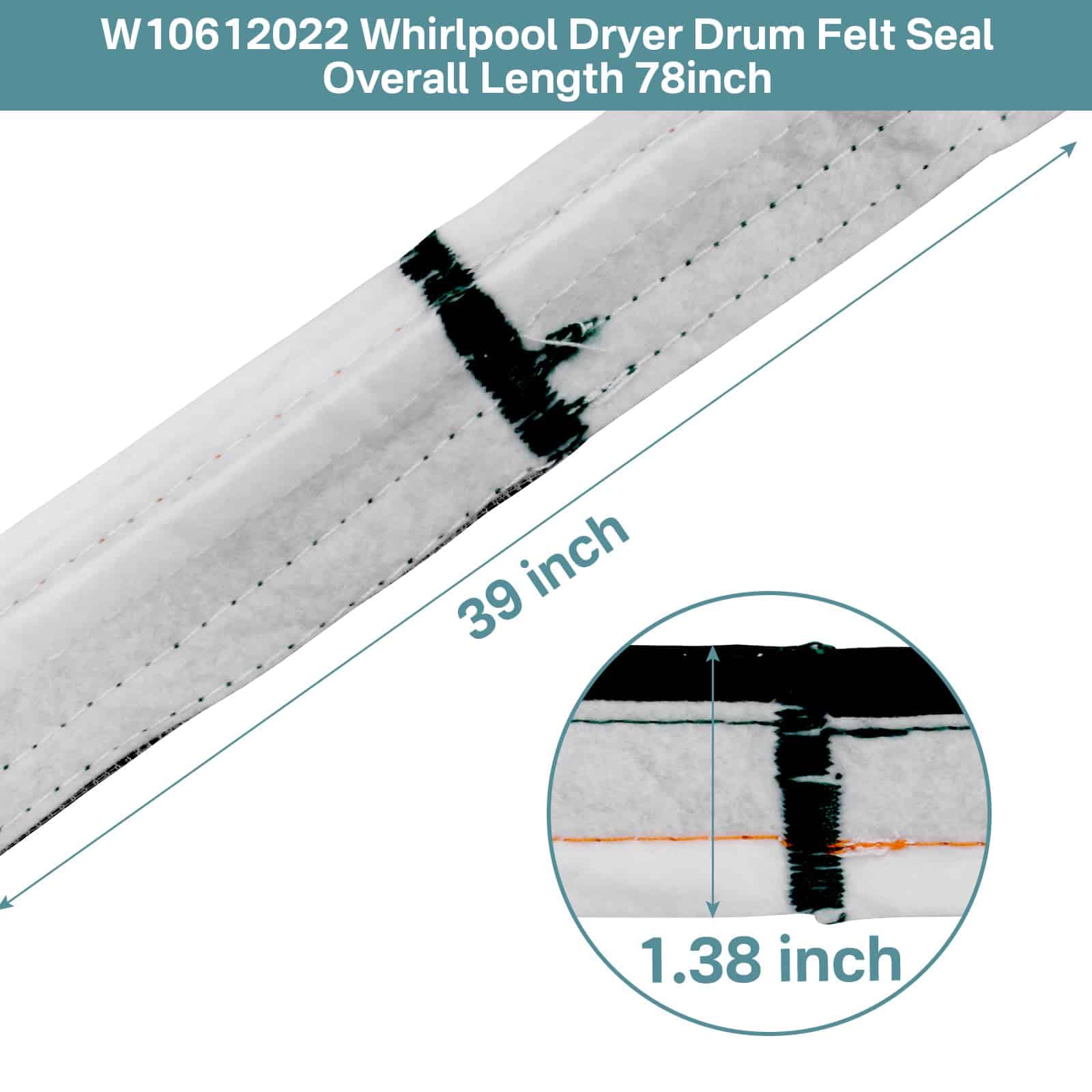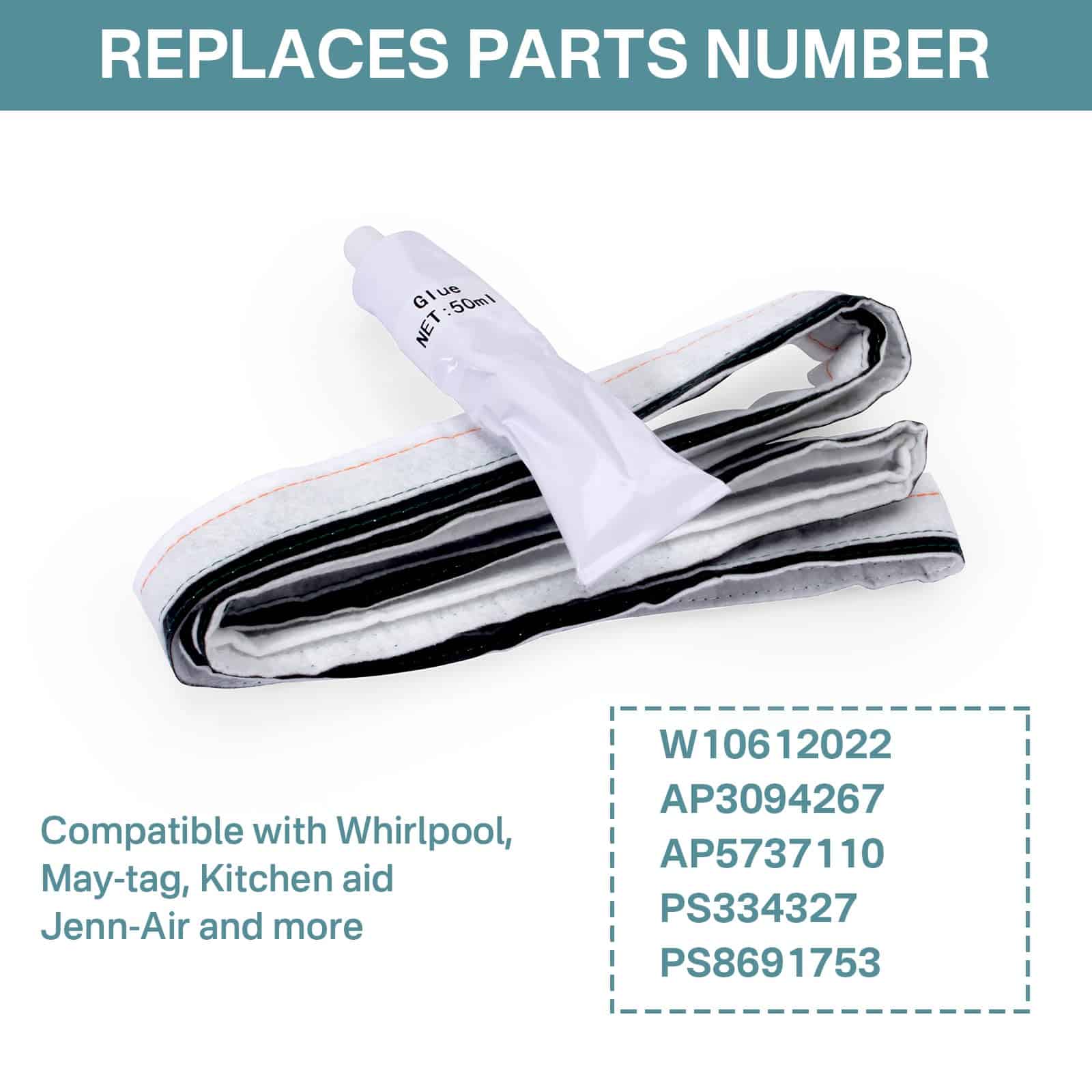 2. Sello de fieltro para tambor de secadora W10612022 compatible con Whirlpool, May-tag, KitchenAid, Jenn-Air, Amana, Magic Chef, Admiral, Norge, Roper y otros.