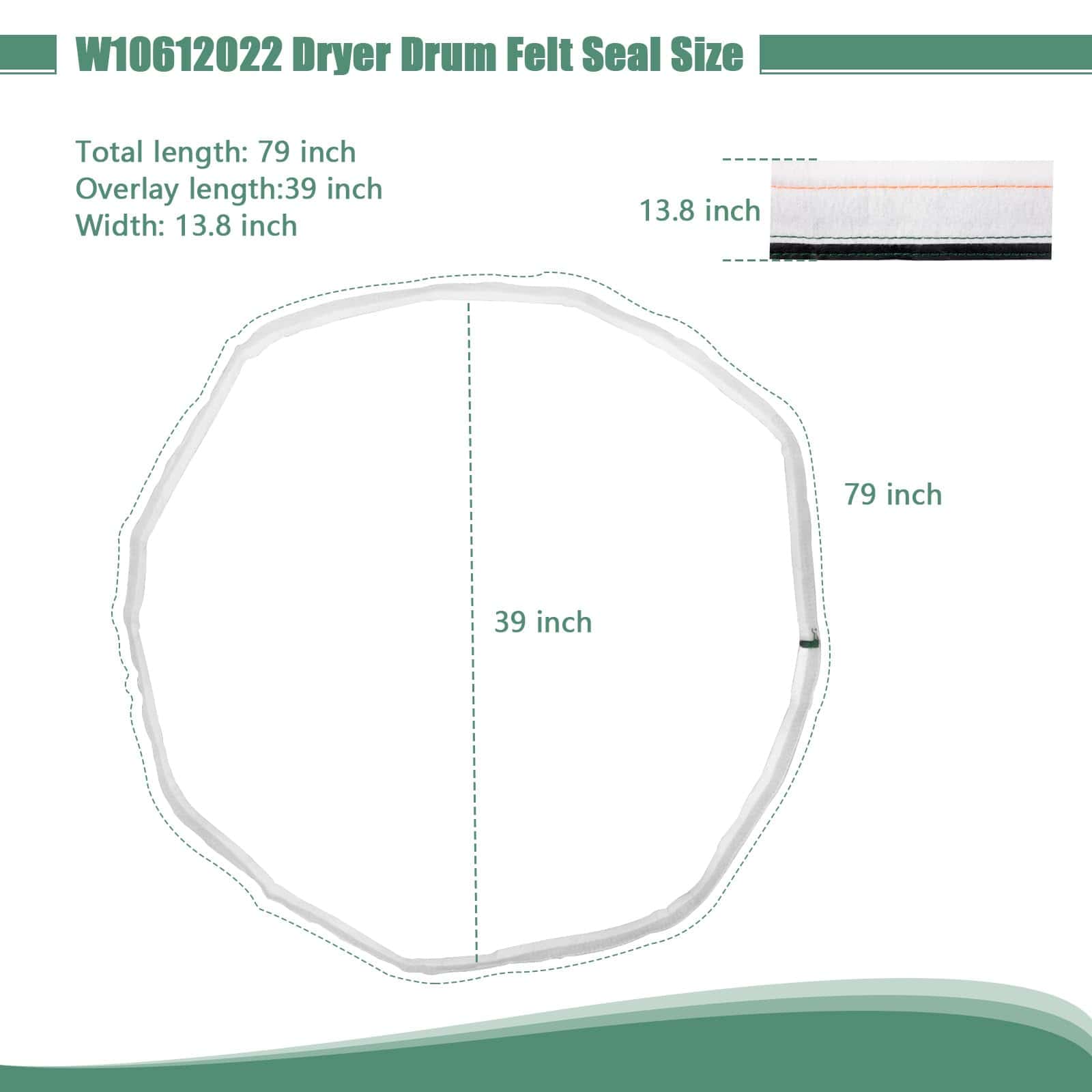 5. El paquete incluye: Kit de sello de fieltro trasero para secadora W106122022 x1. Este es el reemplazo exacto para su viejo cinturón de fieltro. Haga que su secadora funcione como nueva