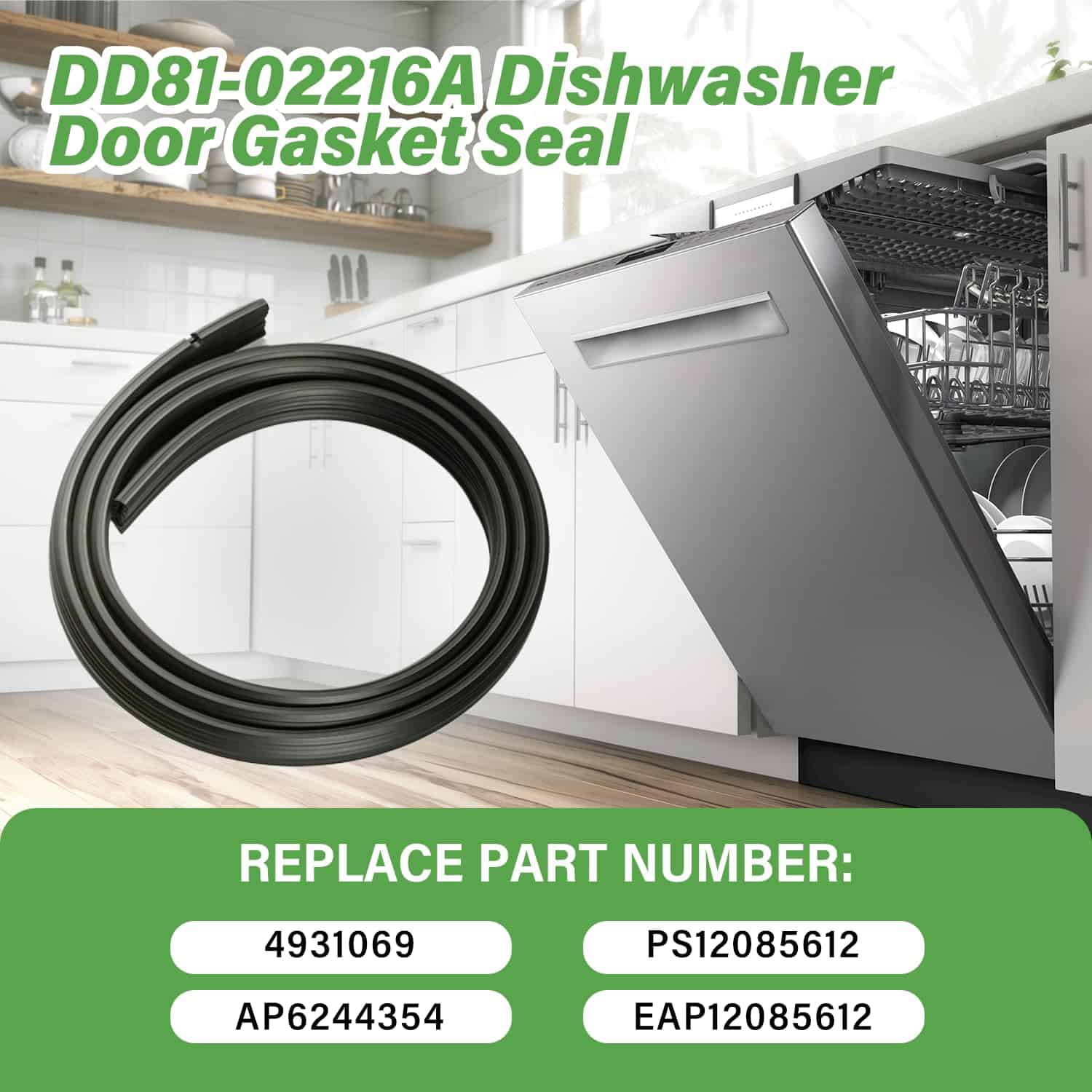 2. Repuesto Número El sello de goma de la puerta del lavavajillas DD81-02216A reemplaza 4931069 AP6244354 PS12085612 EAP12085612.