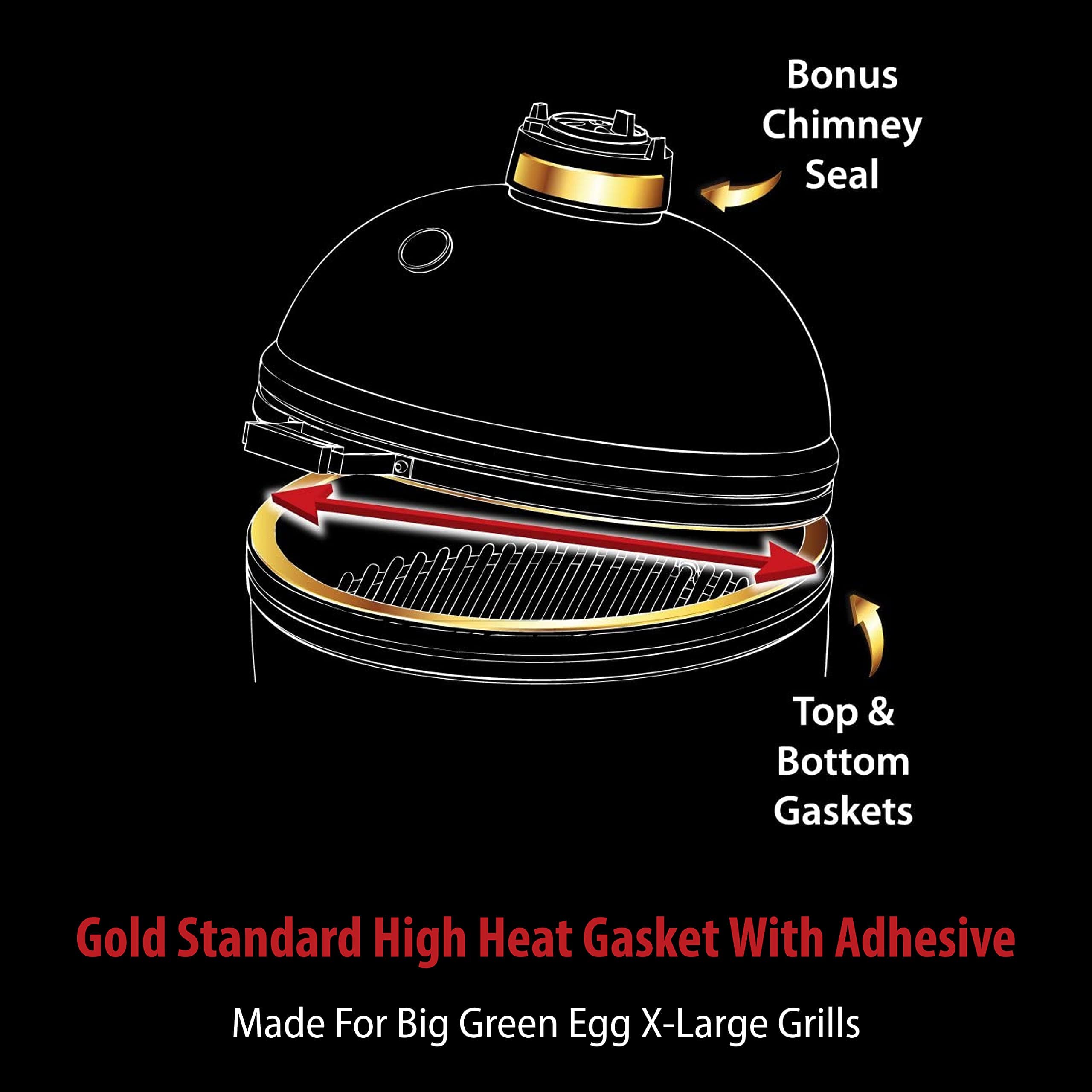 Este sello de goma de alta calidad de High-Que está diseñado para actualizar tu parrilla o ahumador, ofreciendo un sello de temperatura alta de primera calidad que ha sido el mejor en su clase durante 10 años. Fabricado en EE. UU. con una exclusiva mezcla de Kevlar y Nomex, este sello es resistente y duradero. Viene con una garantía de reemplazo sin problemas de dos años y ofrece soporte telefónico gratuito para cualquier pregunta relacionada con la instalación, mantenimiento o garantía. Con este sello de goma, podrás expandir tu menú de barbacoa y asar con confianza a altas temperaturas. Fácil de instalar gracias a las instrucciones a todo color, este sello está diseñado para adaptarse a las parrillas X-Large Big Green Egg y otras parrillas de cerámica de hasta 27″ de diámetro exterior con 7/8″ de borde y un grosor de sello original de 1/8″. Disfruta de la calidad garantizada de los sellos de goma fabricados en EE. UU. por High-Que para una experiencia de asado de alta calidad.