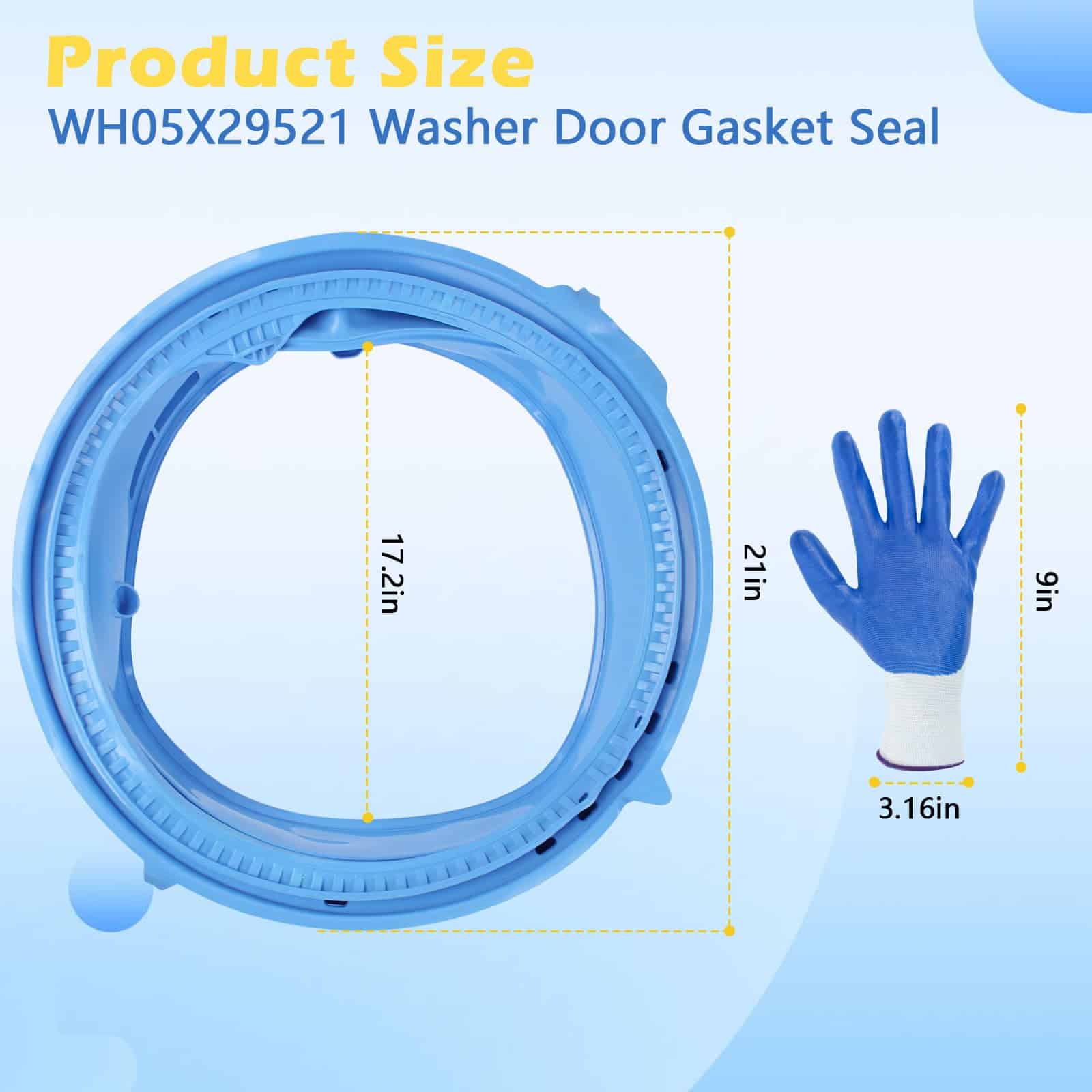 5. El paquete incluye: 1 x Sello de goma para puerta de lavadora WH05X29521 y 1 par de guantes. Se ajusta perfectamente a la puerta de la lavadora para una instalación fácil. Es importante desconectar su electrodoméstico de la fuente de alimentación antes de realizar el servicio y usar guantes de trabajo para proteger sus manos