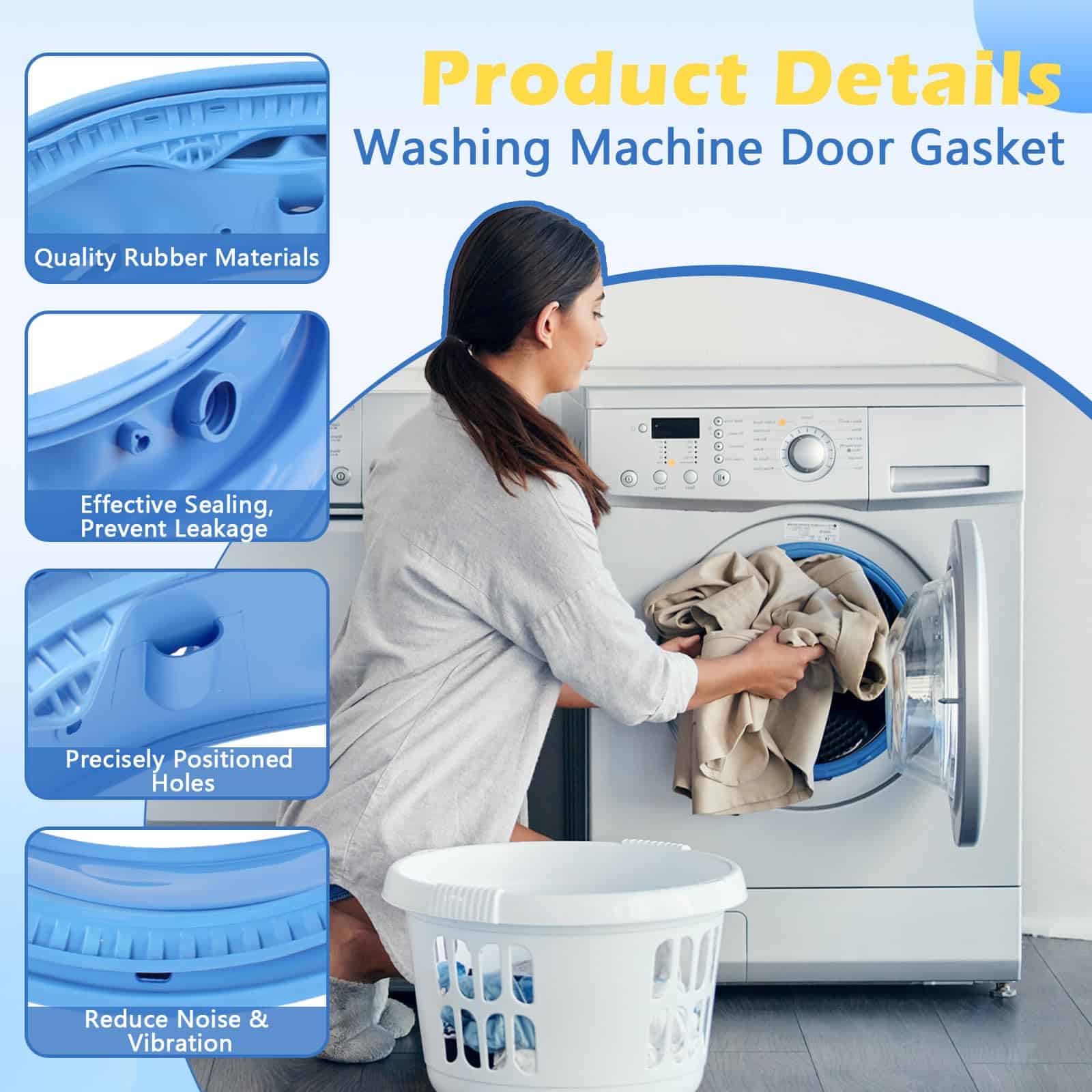 4. Solucionando problemas de la lavadora: La tira de sellado del sello forma un sellado entre la tina de la lavadora y la puerta, previene eficazmente las fugas de agua, reduce el ruido y la vibración, y extiende la vida útil de su lavadora.