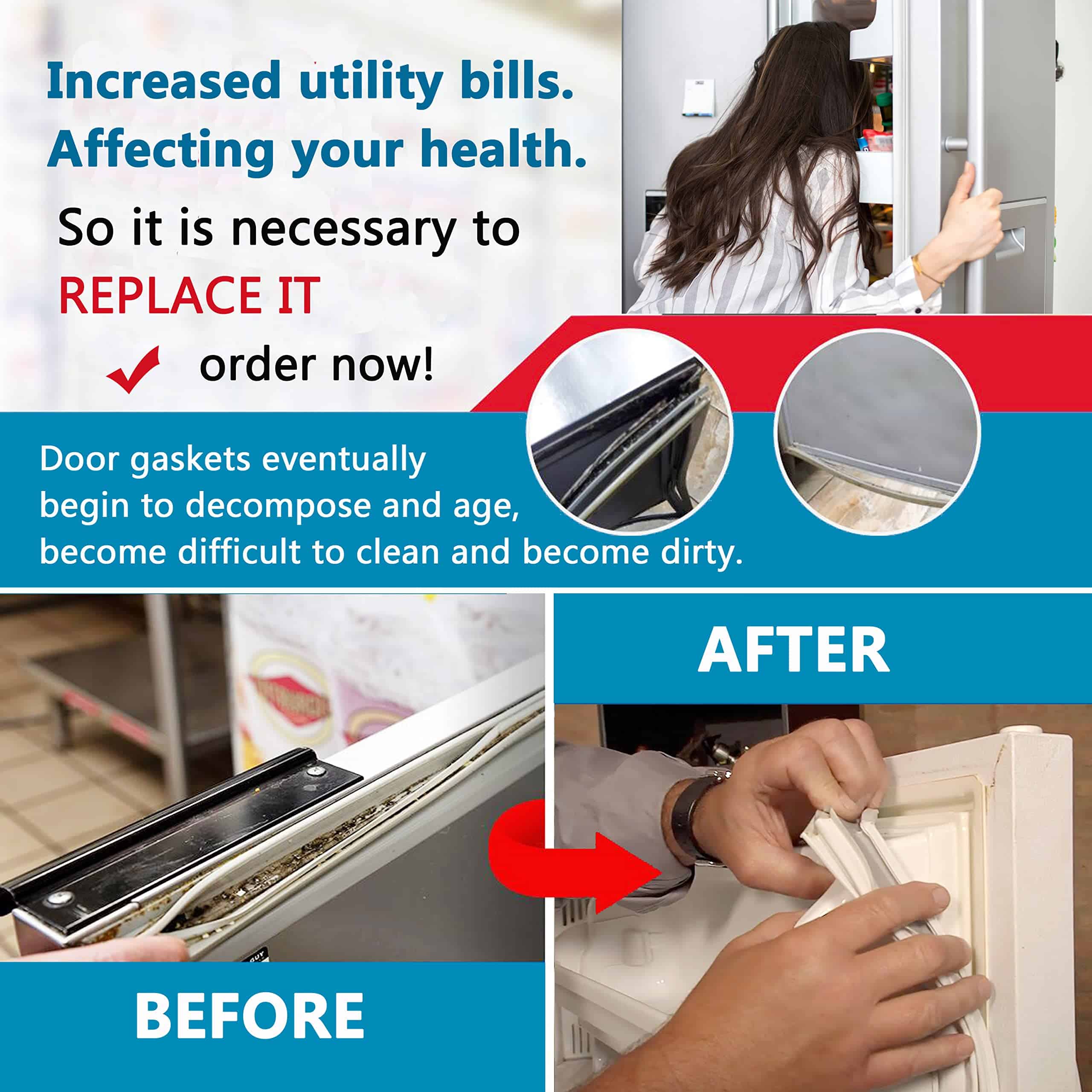 Un sello de puerta de refrigerador eventualmente comienza a descomponerse y deteriorarse, esto conlleva a espacios, el aire frío comienza a escapar. Esto aumenta el consumo de energía y las facturas de servicios.
