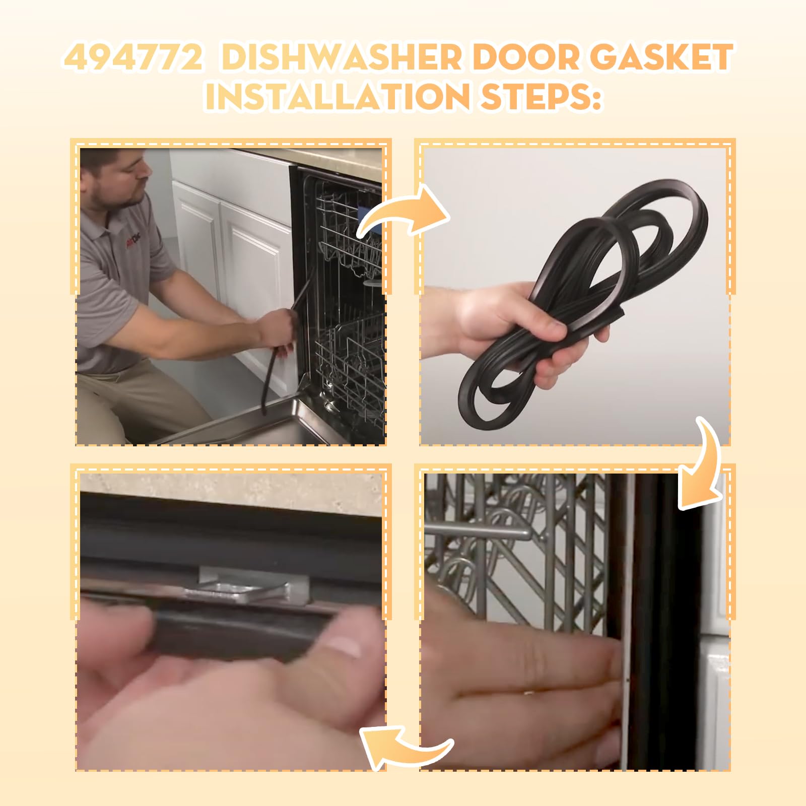 5. FÁCIL DE INSTALAR: El sello de puerta de lavavajillas 00494772 se puede reemplazar e instalar fácilmente. Puede buscar 00494772 en YouTube para encontrar un video tutorial sobre cómo reemplazar esta pieza. Por favor, desconecte la energía y use guantes al reemplazar.