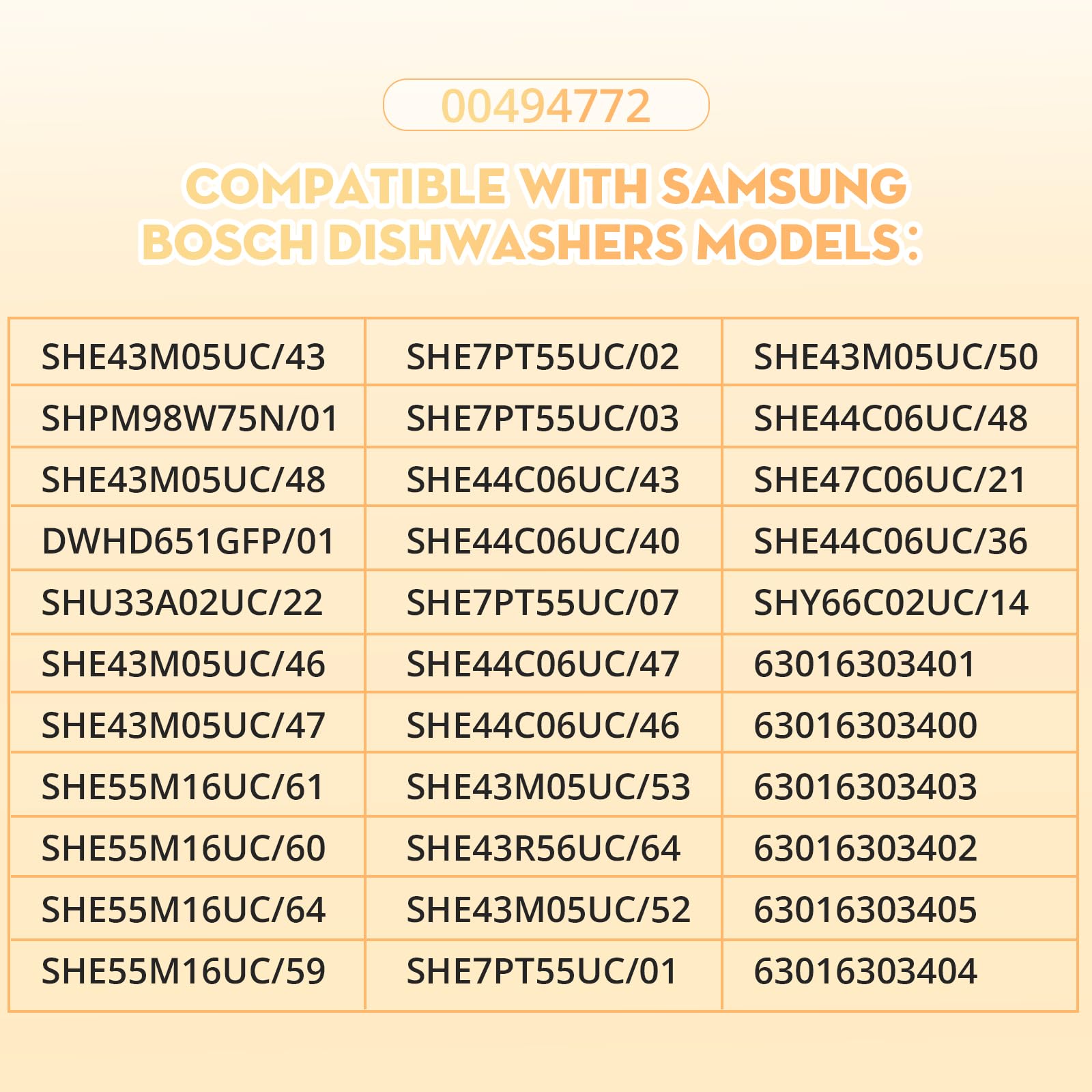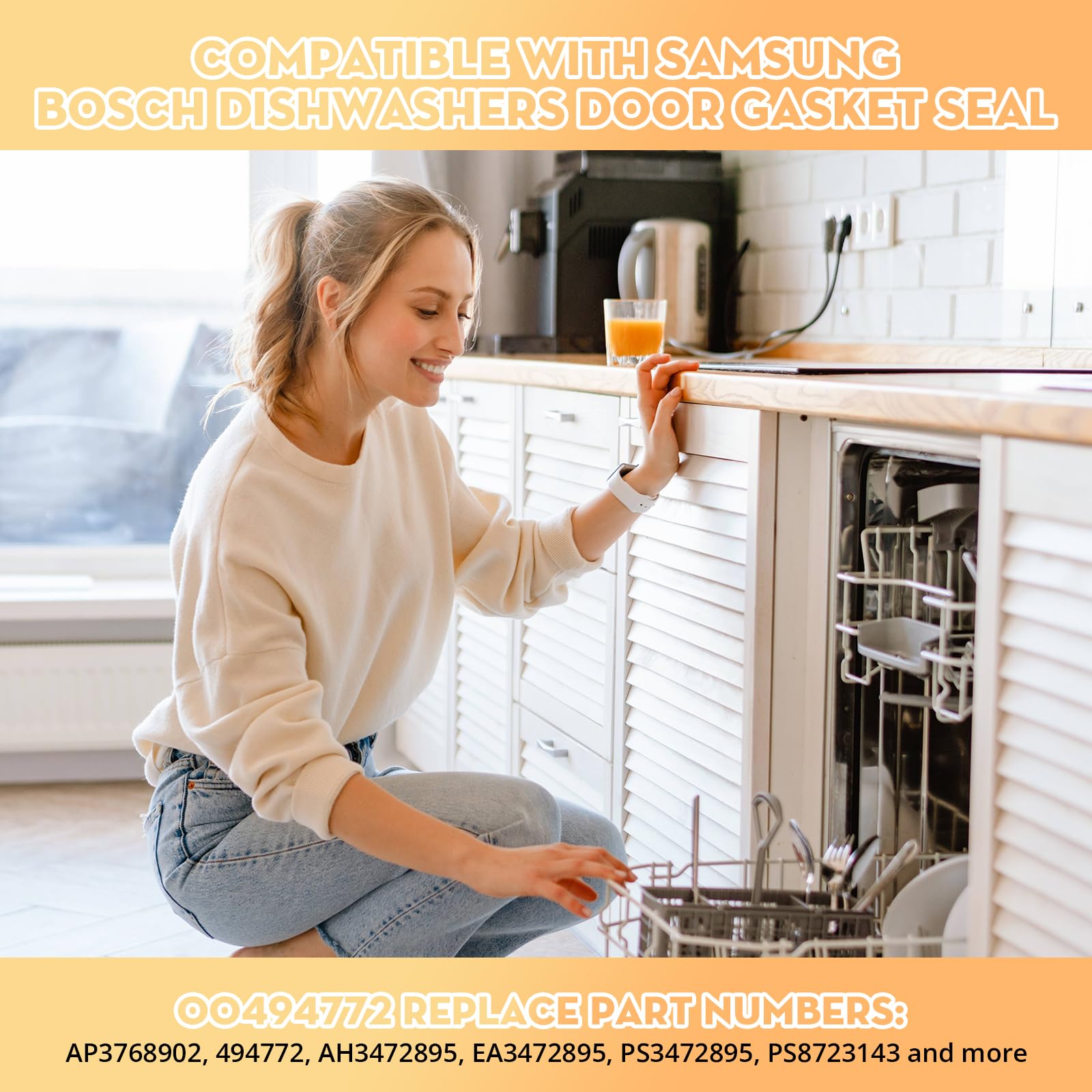 4. AMPLIAMENTE COMPATIBLE: Este sello de puerta de lavavajillas 00494772 es compatible con lavavajillas Samsung/Bosch. Puede reemplazar los números de pieza: AP3768902, 494772, AH3472895, EA3472895, PS3472895, PS8723143 y más.