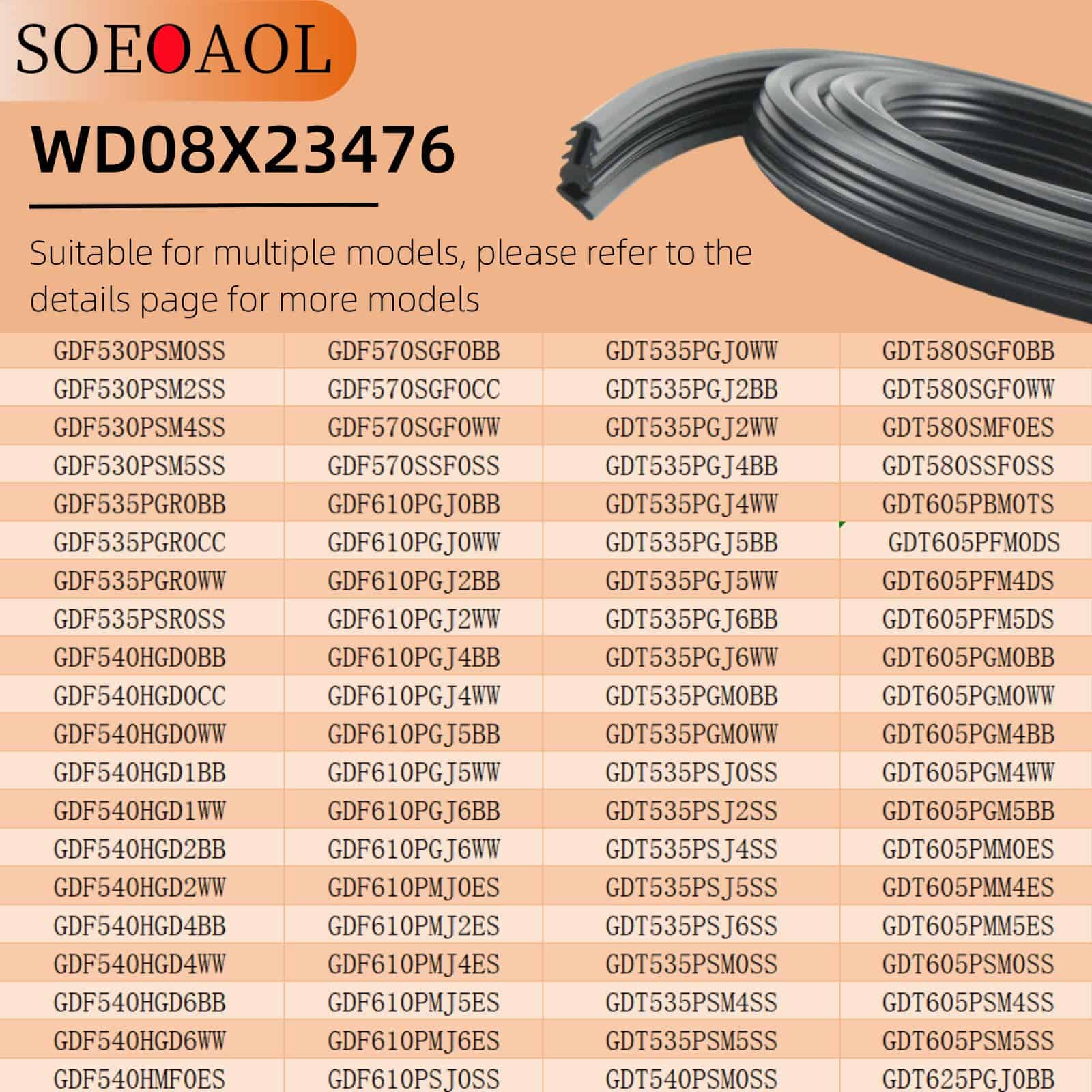 Sello de puerta de lavavajillas WD08X23476 de repuesto,