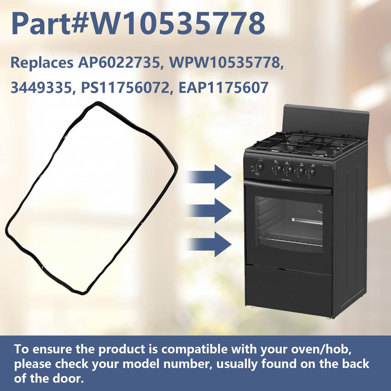 Sello de puerta del horno de rango W10535778 WPW10535778