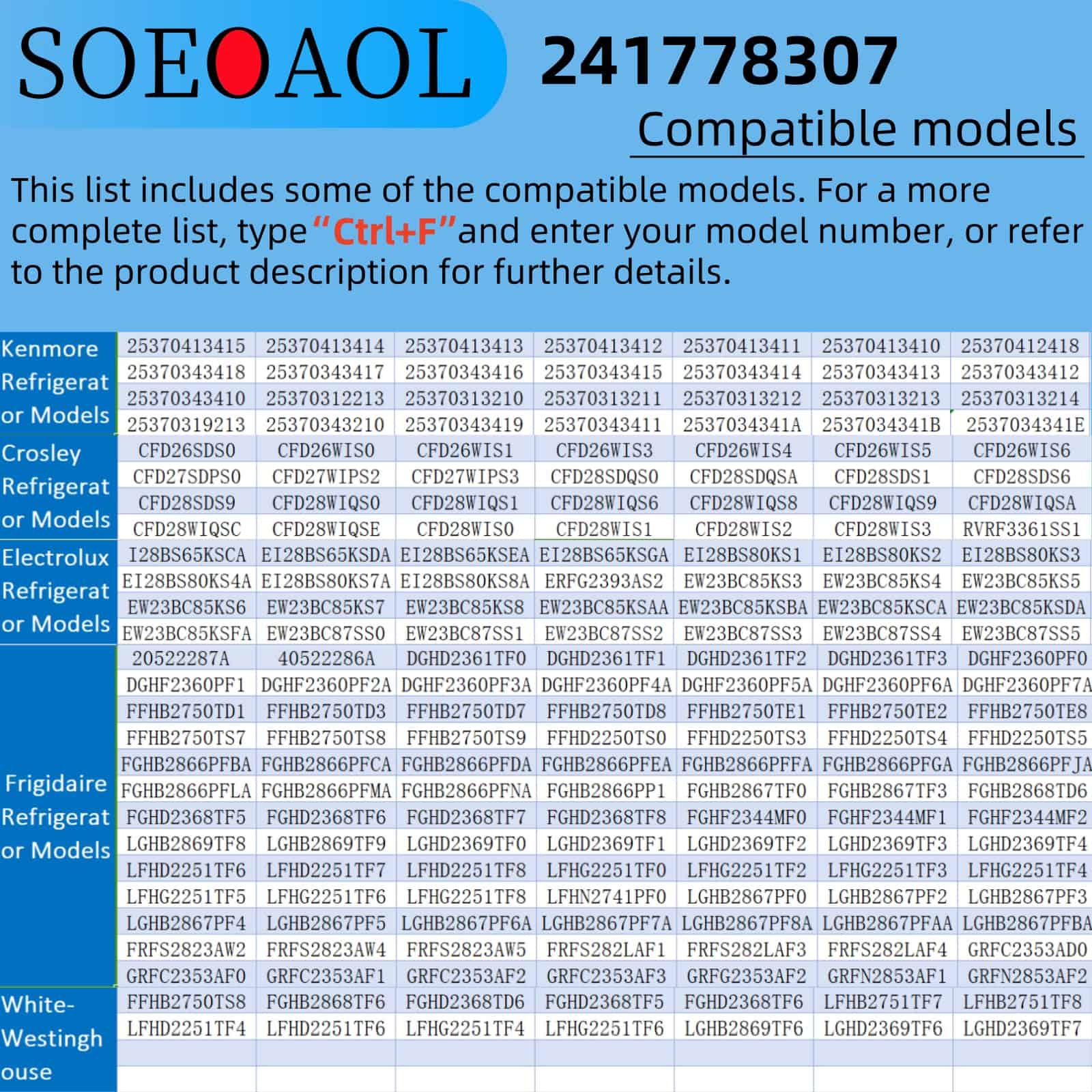 Sello de puerta del refrigerador Upgrade 241778307 para