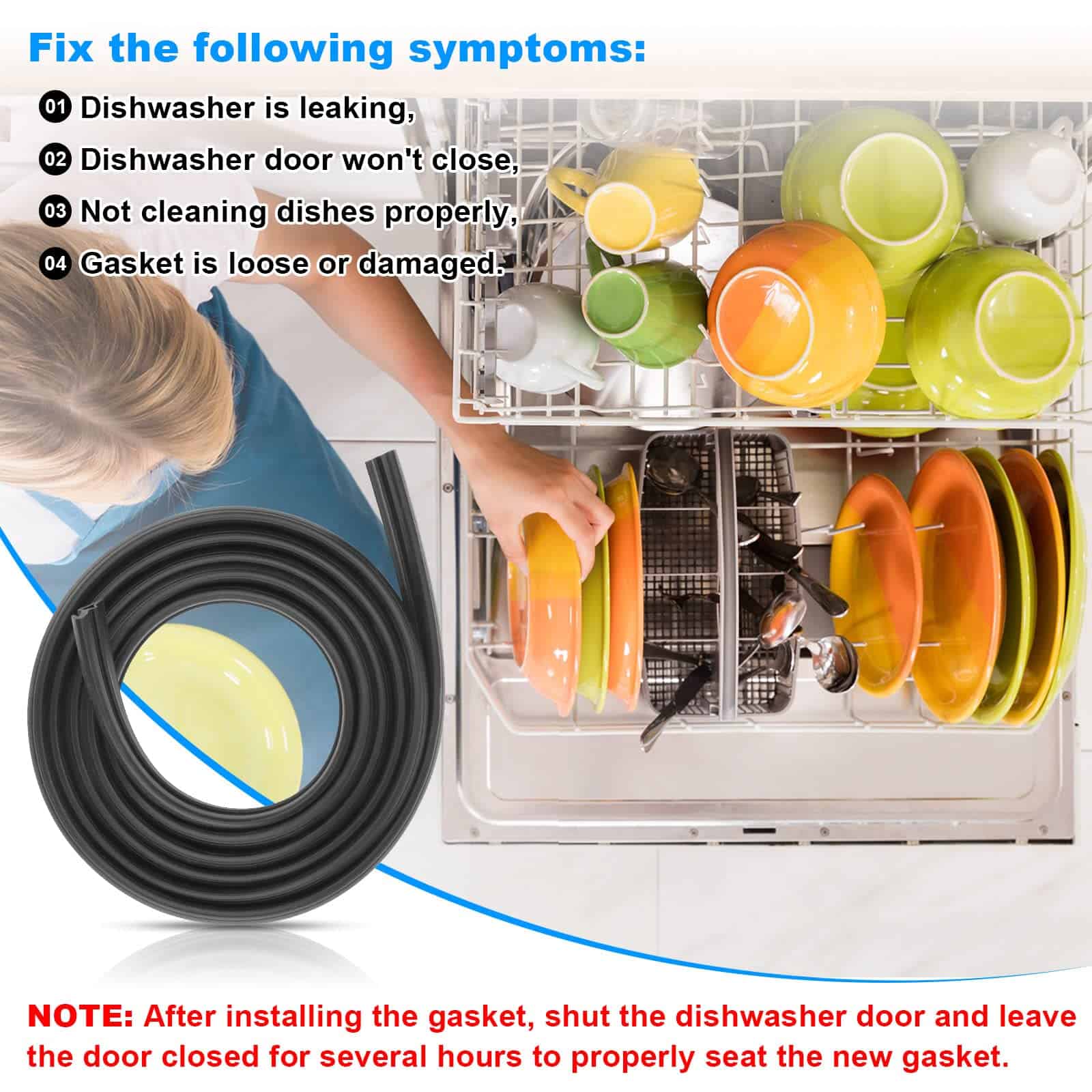 3. Las partes del sello de la puerta del lavavajillas solucionan los siguientes síntomas: El lavavajillas está goteando, la puerta del lavavajillas no se cierra, no limpia correctamente los platos, el sello está suelto o dañado. Después de instalar el sello, cierre la puerta del lavavajillas y deje la puerta cerrada durante varias horas para asentar correctamente el nuevo sello.