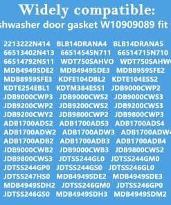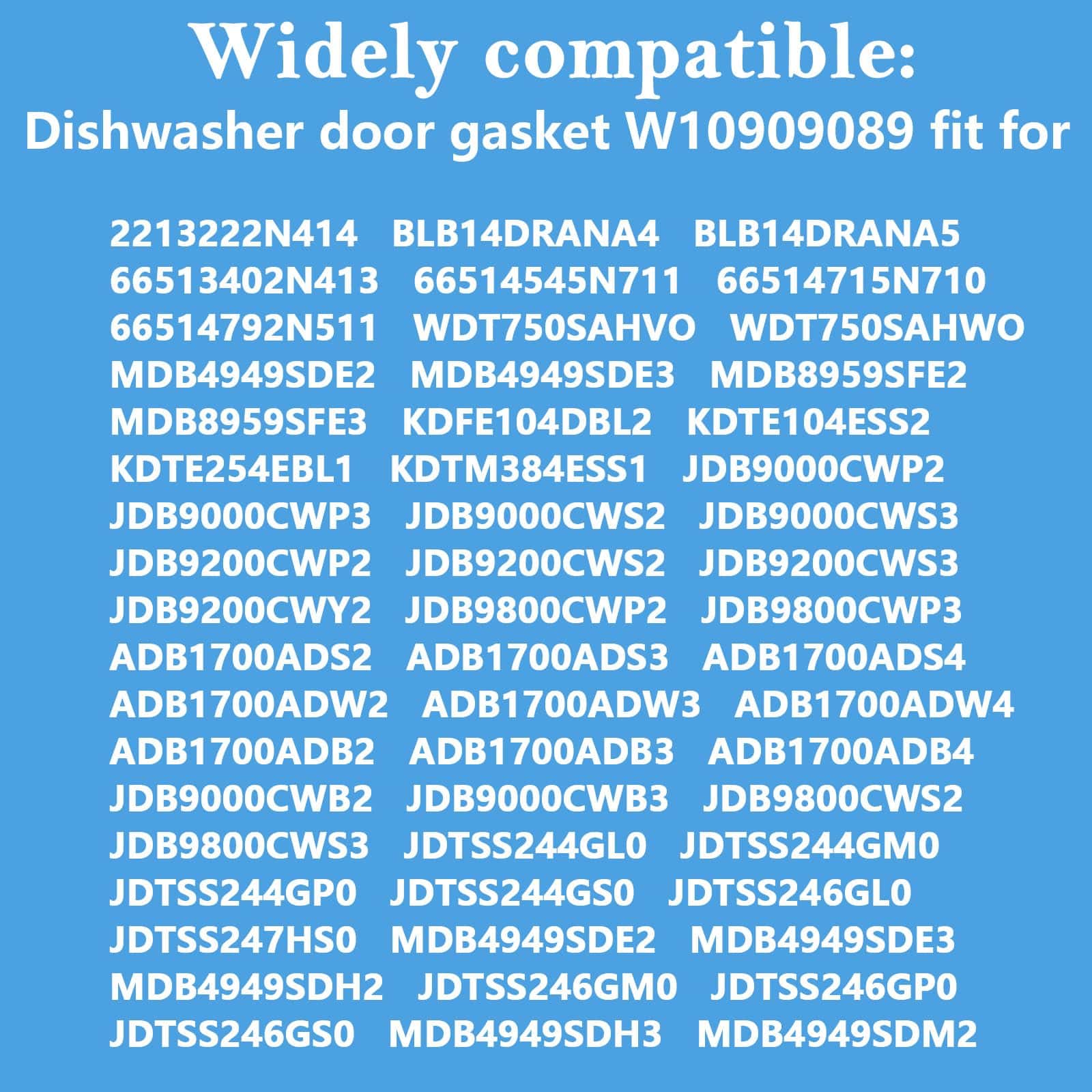 Sello de Puerta de Lavaplatos W10909089 AP6034205 de Repuesto para Whirlpool, Admiral, Amana, Estate, Crosley, Jenn-Air, Kenmore, Kitchen Aid, Sears, Kirkland, Magic Chef, Roper – Sello de Puerta de Lavaplatos AP6034205. Mantenga su lavaplatos funcionando de manera eficiente con este sello de puerta de lavaplatos de repuesto. Fabricado con materiales de alta calidad, este sello de puerta es compatible con una amplia gama de marcas y modelos. Reemplaza los modelos anteriores W10667473, AP6034205, EAP11766757, PS11766757, PD00033347. El diseño de fácil instalación hace que cambiar el sello de la puerta del lavaplatos sea una tarea sencilla. Simplemente retire el sello viejo e inserte el nuevo para evitar problemas de filtraciones en los bordes del lavaplatos. No permita que un sello de puerta defectuoso arruine su experiencia de lavado de platos. Con este sello de puerta de lavaplatos de repuesto, podrá continuar disfrutando de platos limpios y secos sin preocupaciones. ¡Obtenga su sello de puerta de lavaplatos hoy mismo y vuelva a lavar platos en poco tiempo!