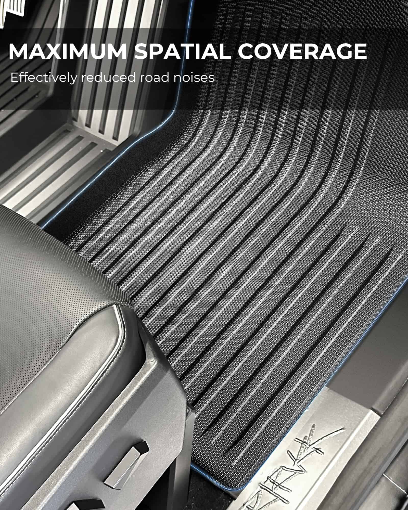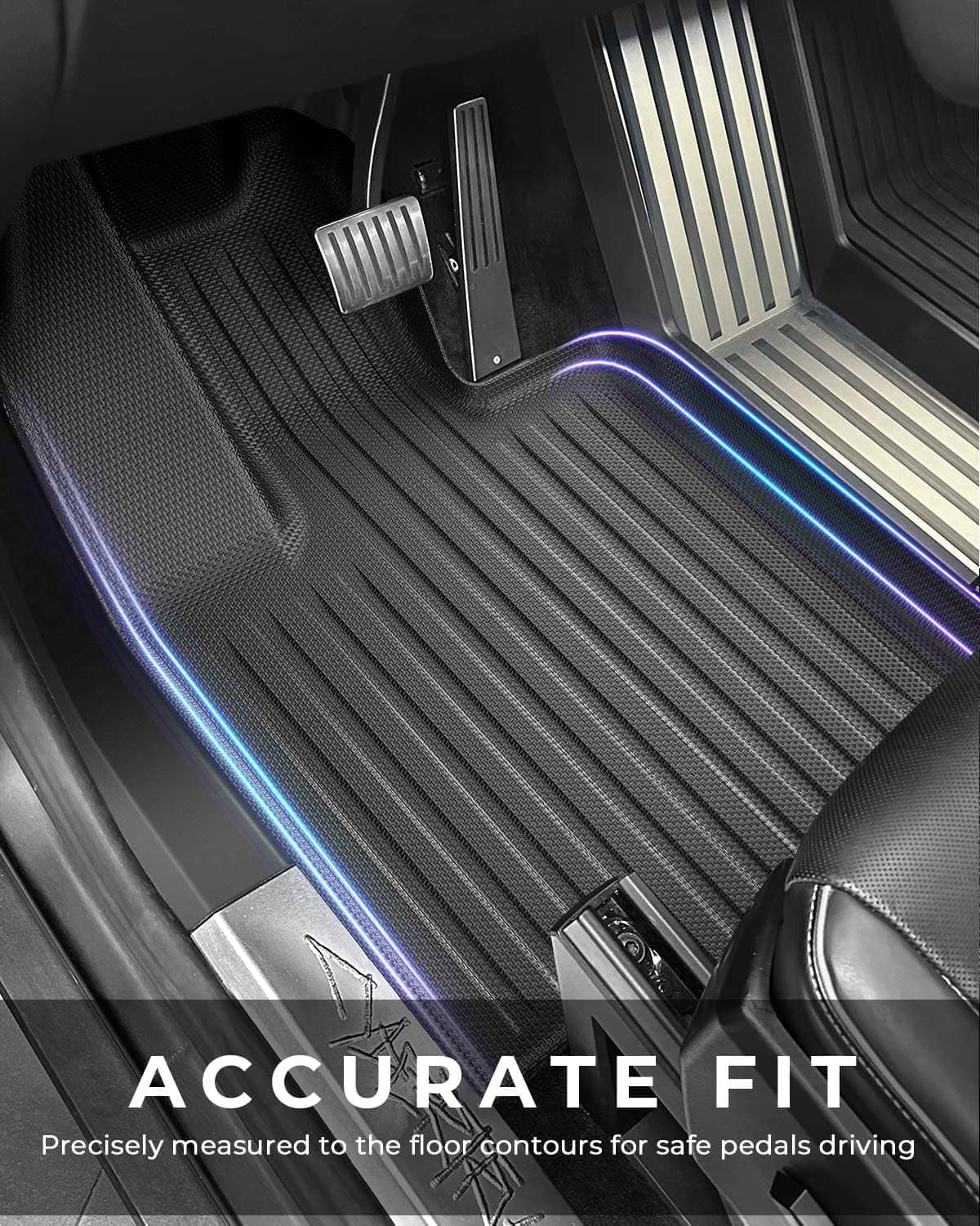1. FÁCIL DE INSTALAR Y AJUSTE PRECISO Nuestros tapetes para Cybertruck se instalan fácilmente por usted mismo. La última tecnología de escaneo 3D crea paredes verticales de diseño de precisión que se ajustan al automóvil de manera precisa y ayudan a proteger las alfombras interiores. Nuestros tapetes hechos a medida se fabrican según los contornos interiores del Tesla Cybertruck, lo cual no afecta el uso del freno y el acelerador para permitir una conducción segura.